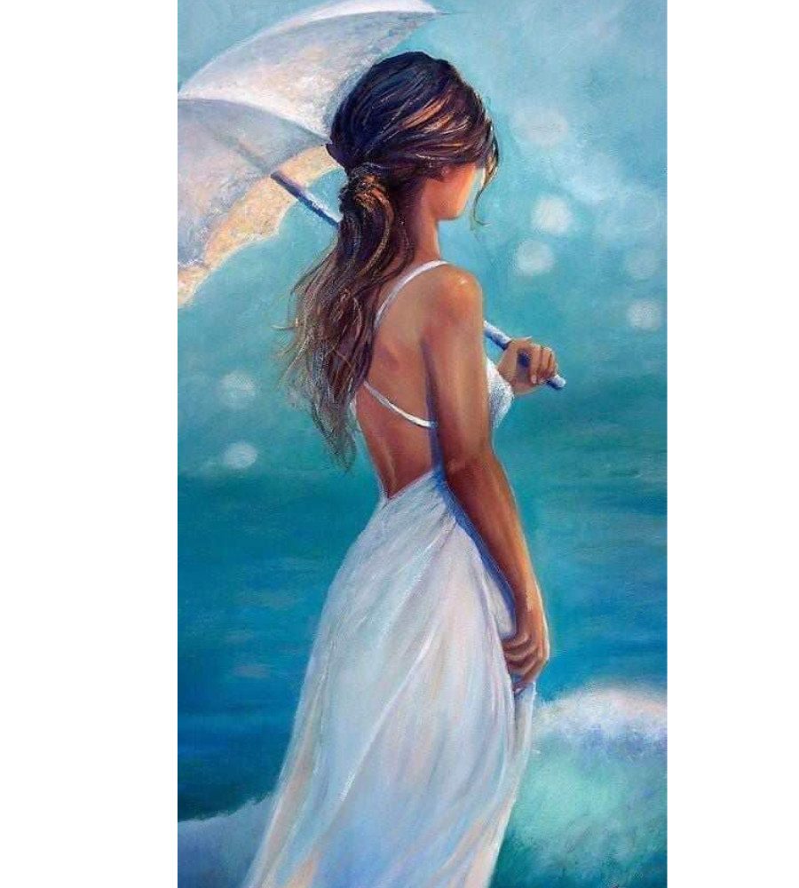 Malen nach Zahlen Diamond Painting Set 5D DIY Motiv Frau mit Sonnenschirm