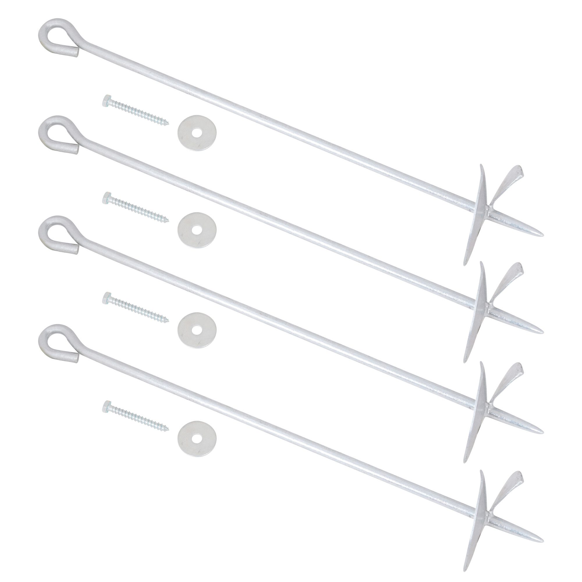 4 x BODENANKER / ERDANKER ZUM EINDREHEN - GESAMTLÄNGE 60 CM - STAHL VERZINKT