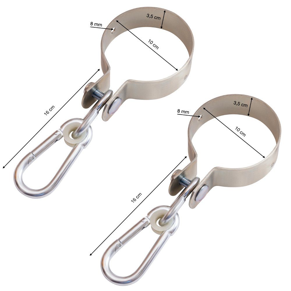 Zwei Schaukelschellen mit Karabinerhaken Verzinkt für Runde Balken Ø 10 CM