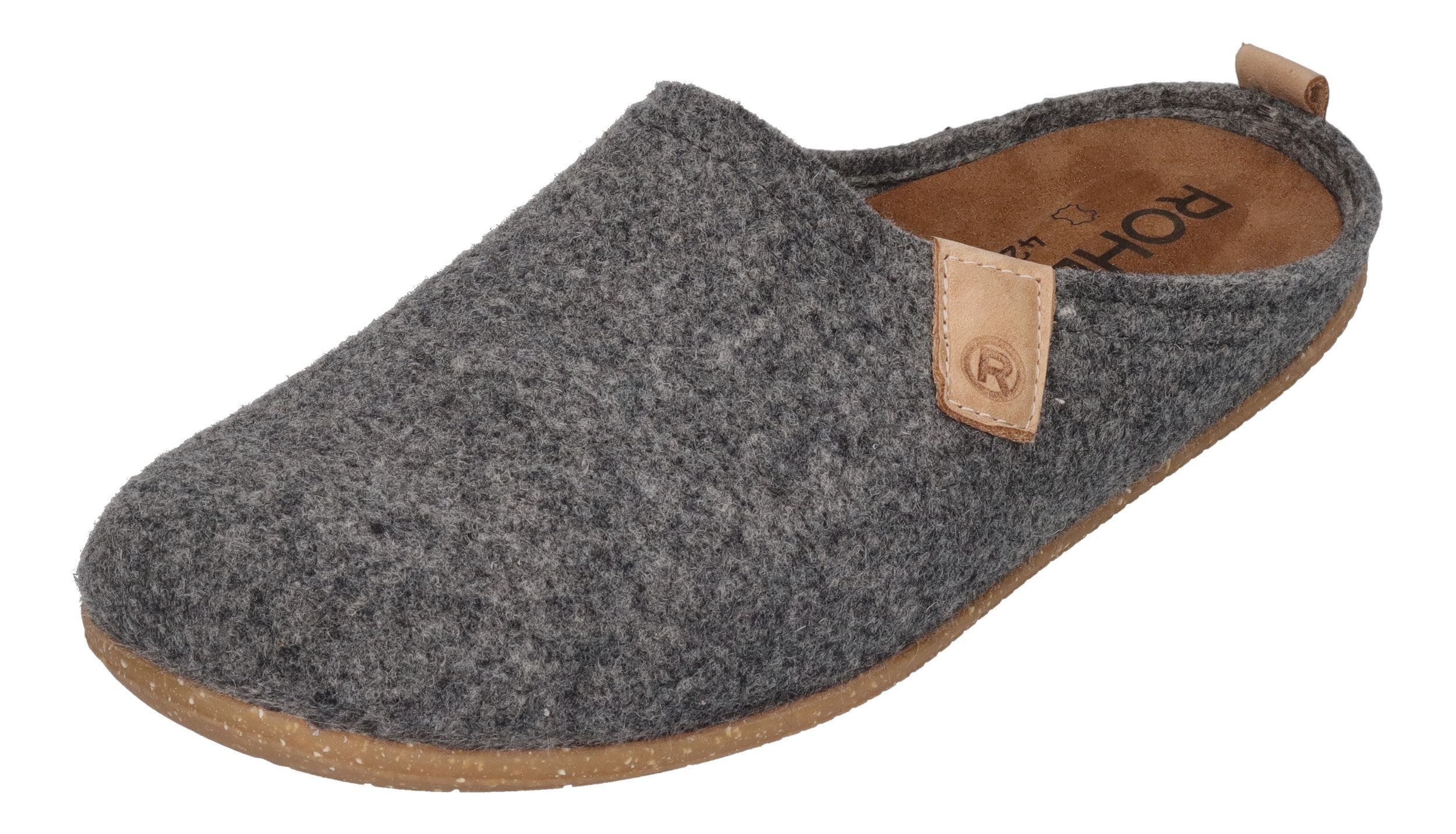 Die Hauschuhe Tivoli-H in grau aus der ECO FRIENDLY Kollektion sind absolut gemütlich durch die ausgeformte Leder-Innensohle und den verwendeten Softfilz.