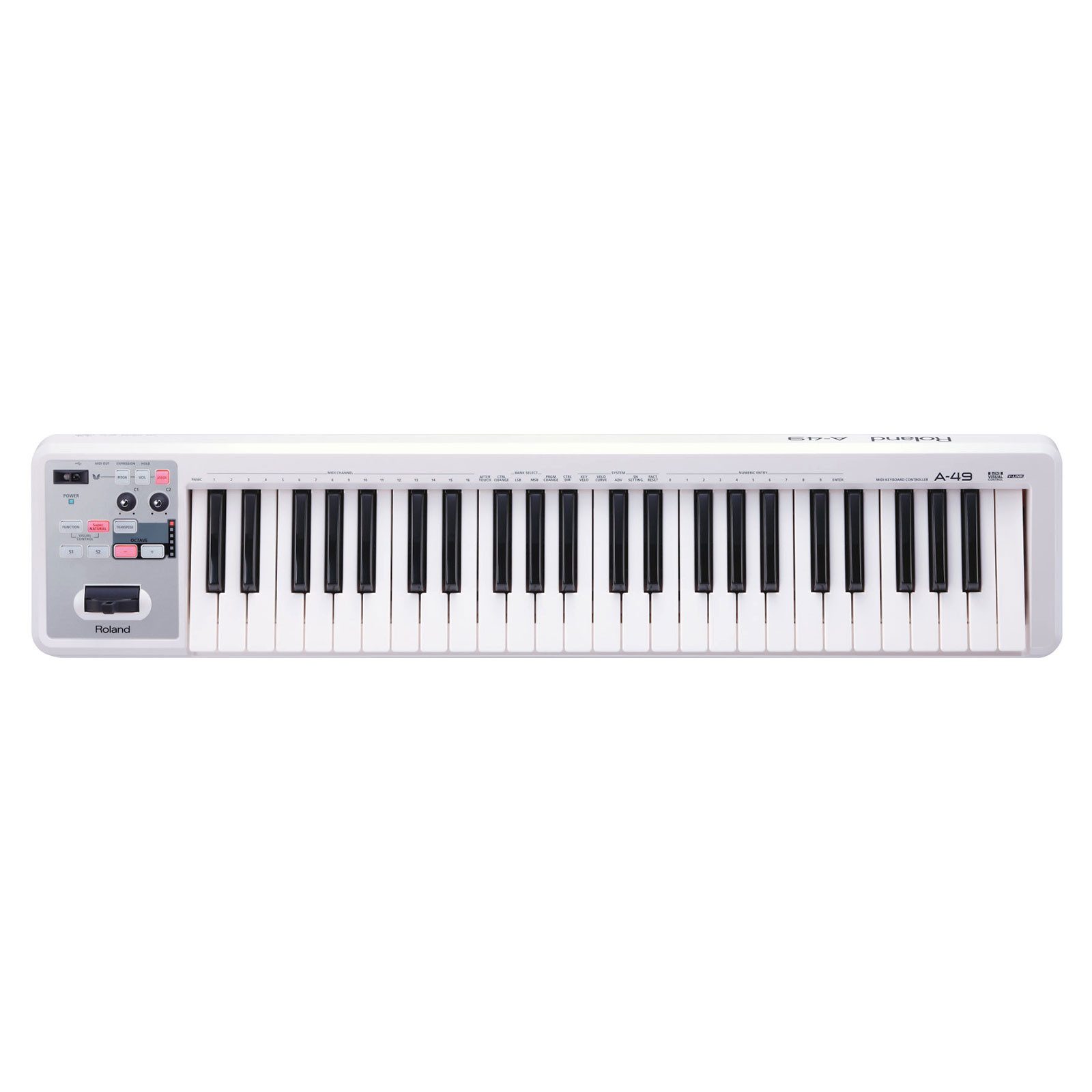 Das Roland A49sticht gegenüber vergleichbaren MIDI-Controller-Keyboards durchseine hochwertige, geräuscharme Vollformat-Tastatur und sein ausgezeichnetes Spielgefühl heraus. Das leichte und kompaktdesignte Keyboard ist in seiner Bedienung schlicht und effektivgehalten. Neben den 49 Vollformat-Tasten mit Anschlagdynamikstehen 2 Regler und Buttons für Pitch, Volume, Transpose und VisualControl-Button zur Verfügung.