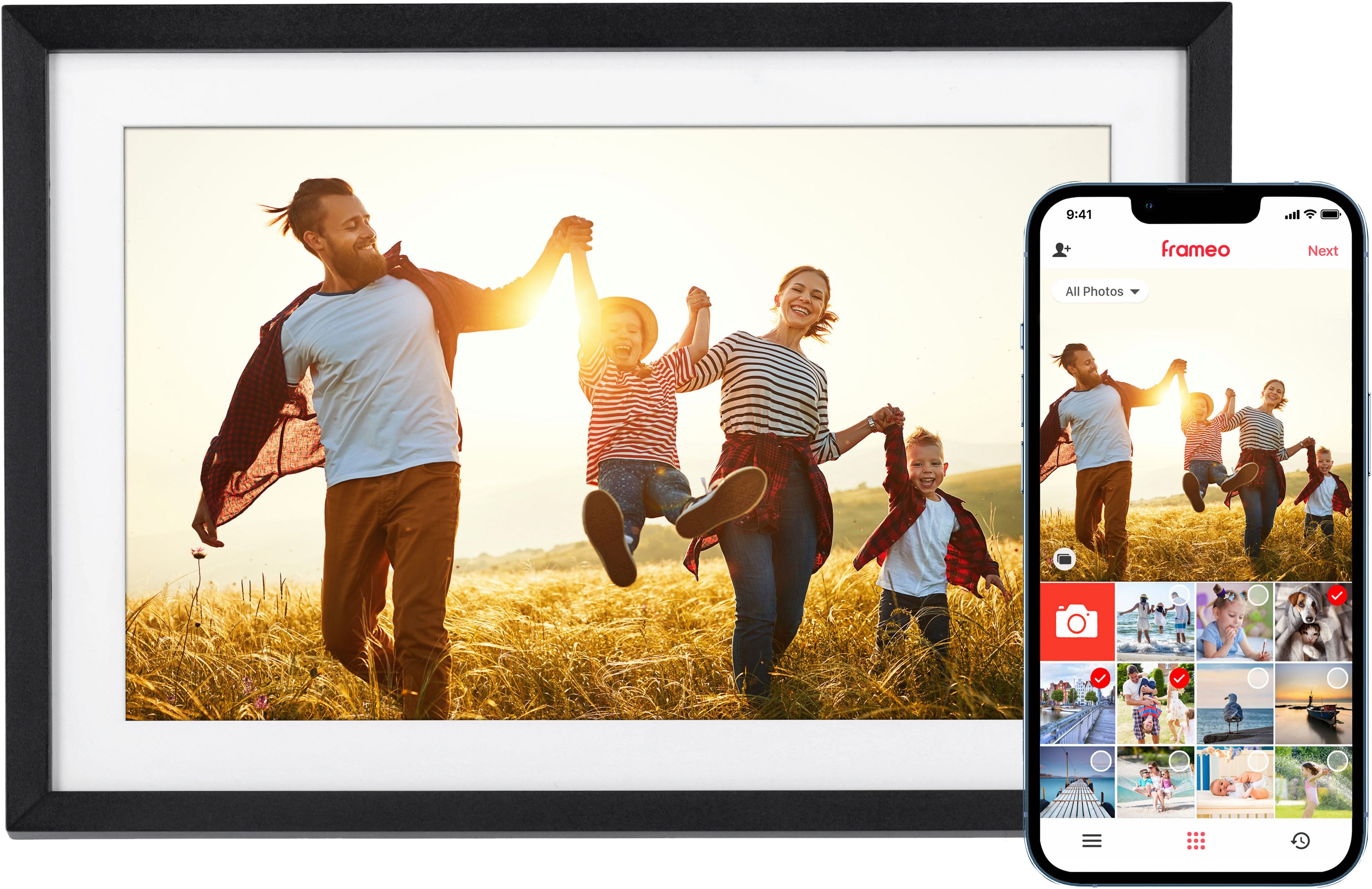 • Flexible Übertragung: Von Frameo-App, Speicherkarte, USB-Speicher oder Computer