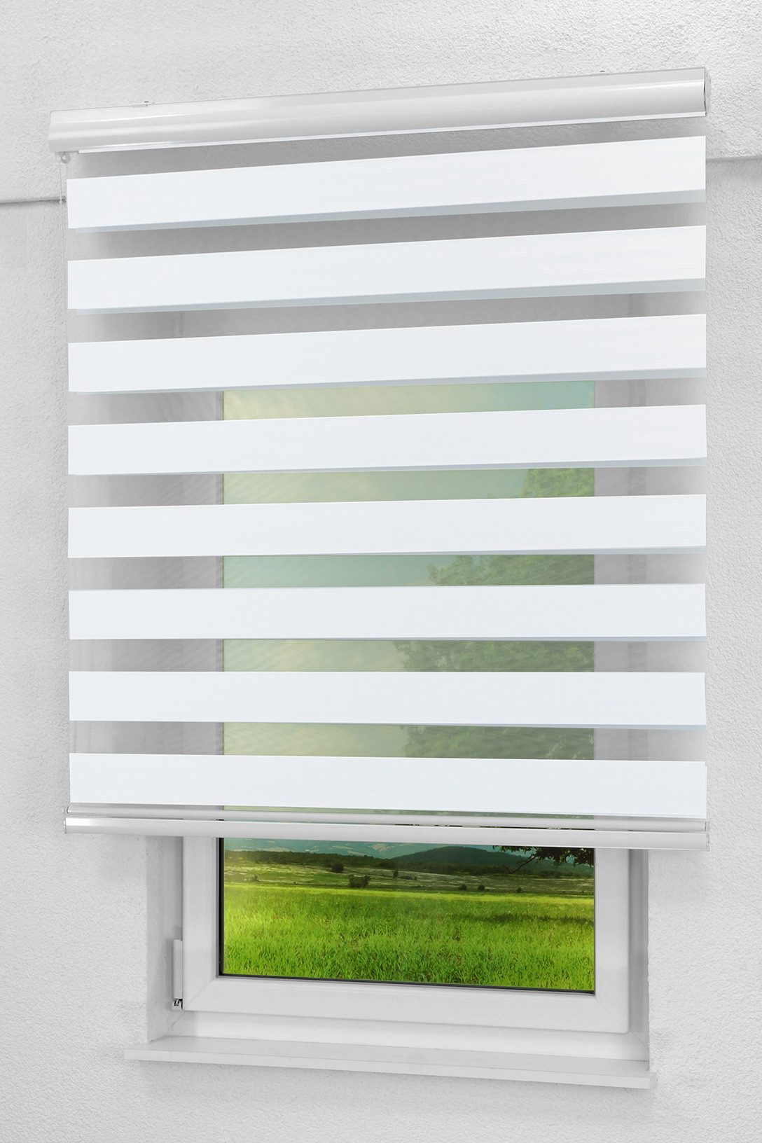 Das verdunkelnde Qualitätsdoppelrollo mit Blende sorgt trotz seiner hellen Farbgebung für eine gute Abdunkelung des Raumes. Mit dem für Doppelrollos typischen Wechsel von transparenten und undurchsichtigen Streifen, die sich mit einer Handbewegung präzise hintereinander positionieren lassen, ist flexible Lichtgestaltung und Sichtschutz ein Kinderspiel. Apropos Kinder: Mit der mitgelieferten Fixierung für die Bedienkette, wird das Rollo kindersicher montiert. Dies geschieht mit dem im Lieferumfang enthaltenen Montagematerial an der Wand vor der Fensternische bzw. an der Decke in oder über der Fensternische. Bei der Montage in der Fensternische achten Sie bitte auf eine ausreichende Breite der Nische und darauf, dass das Fenster beim Öffnen vom Rollo nicht behindert wird..