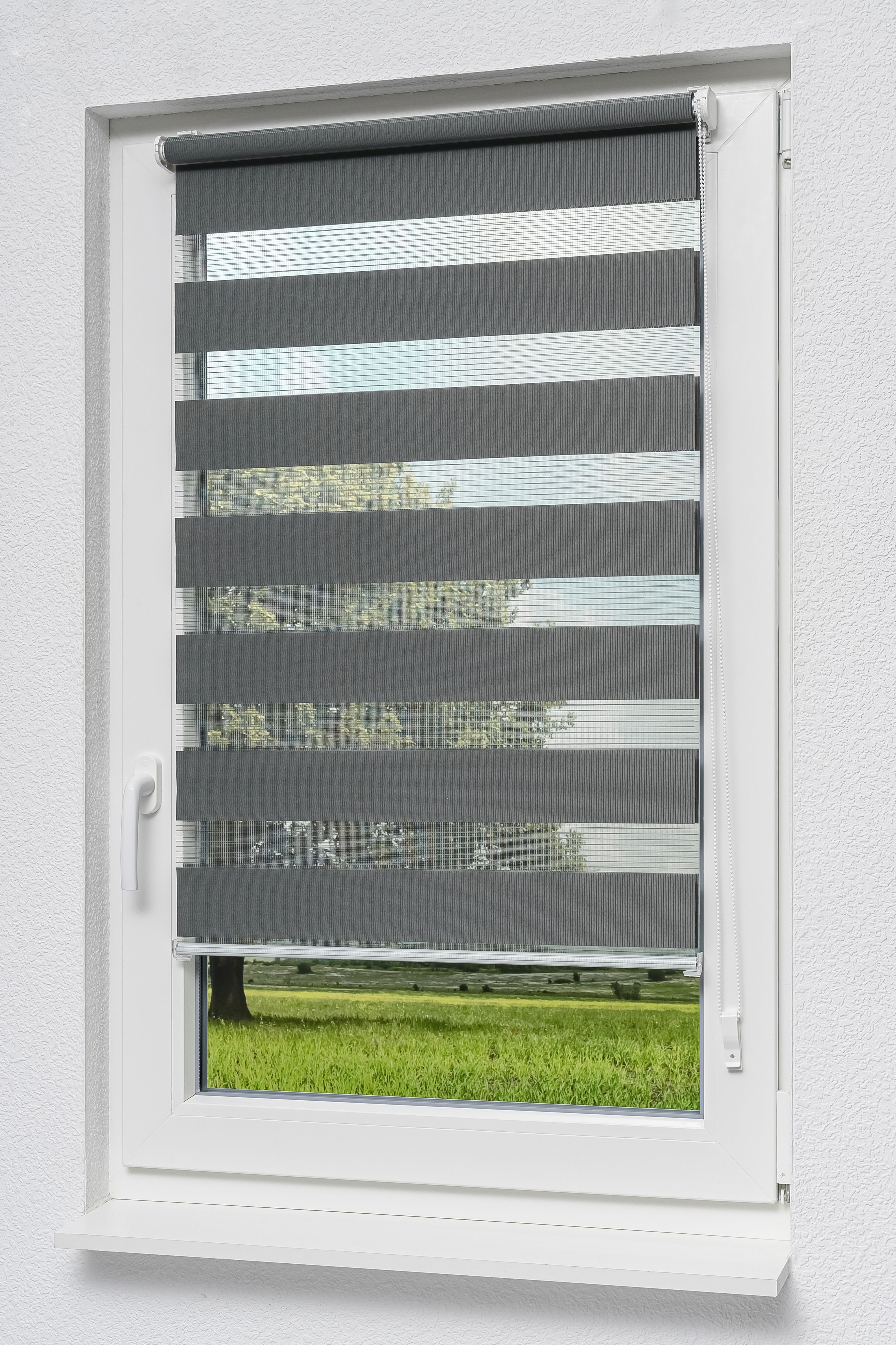 Dieses anthrazitfarbene Doppelrollo fügt sich in das Wohnambiente ein, ohne die Aufmerksamkeit zu beanspruchen. Es besticht durch seine raffinierten Gestaltungsmöglichkeiten..