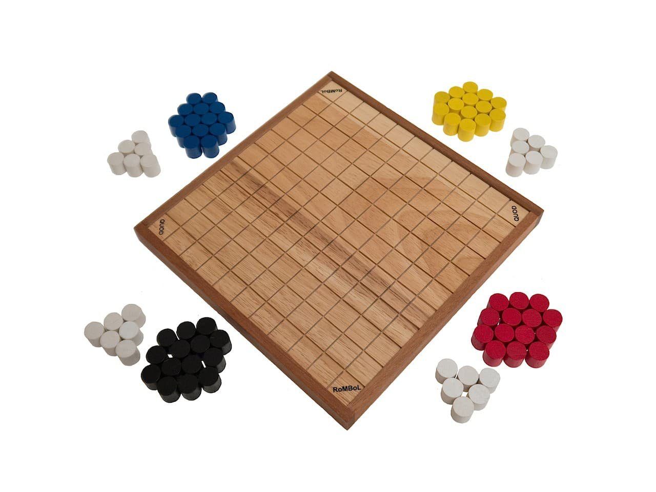 BRETTSPIEL AUS HOLZ: Jedes Spieler platziert abwechselnd seinen farbigen Steine auf einer quadratischen Grundfläche und zwar so, dass sie ein Quadrat bilden mit 4 besetzte Ecken.