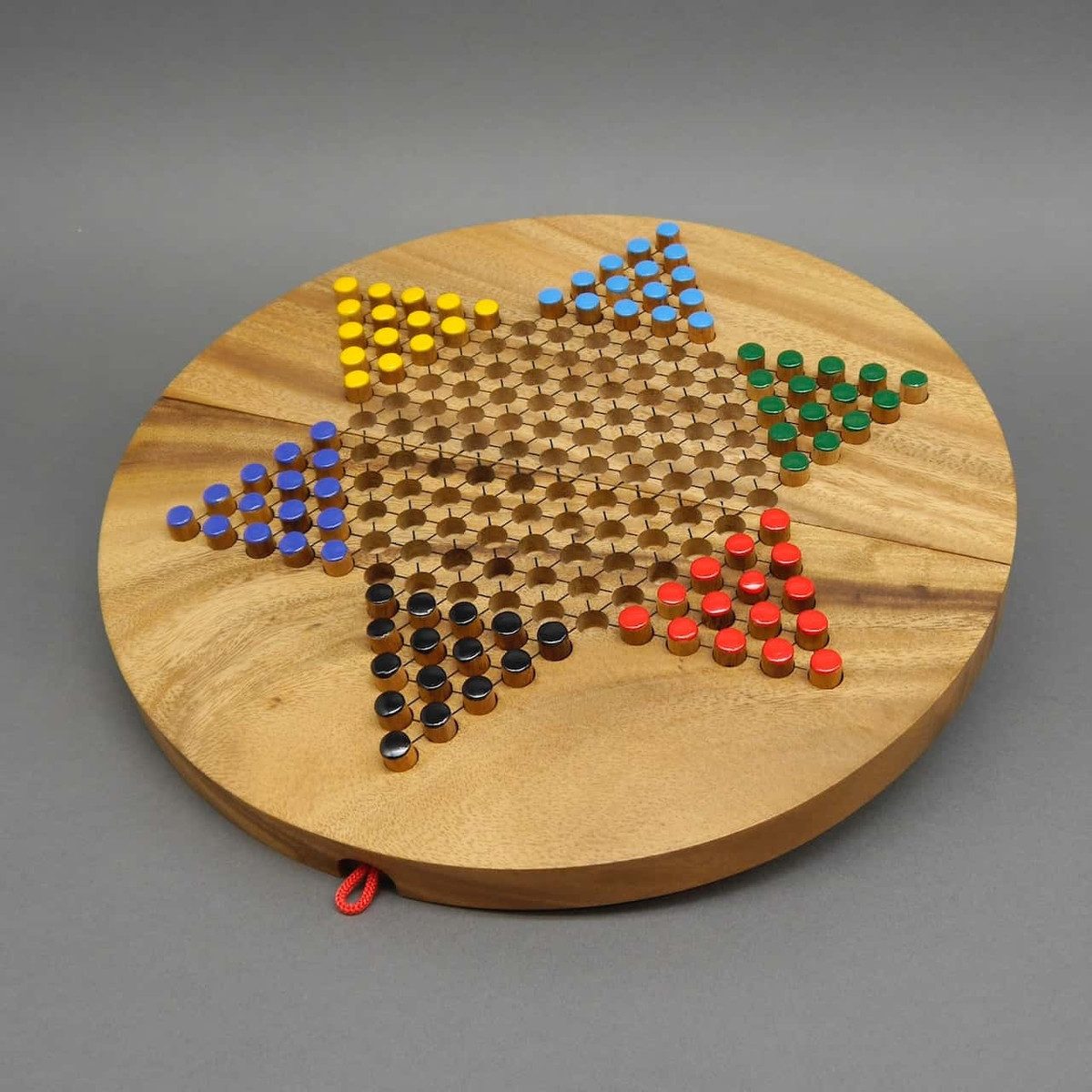 HALMA XL von ROMBOL: Edles Steckspiel aus hochwertigem Holz. Klappbares Brett, handgefertigt & einzigartig durch individuelle Maserung. Ideal für 2-6 Spieler.