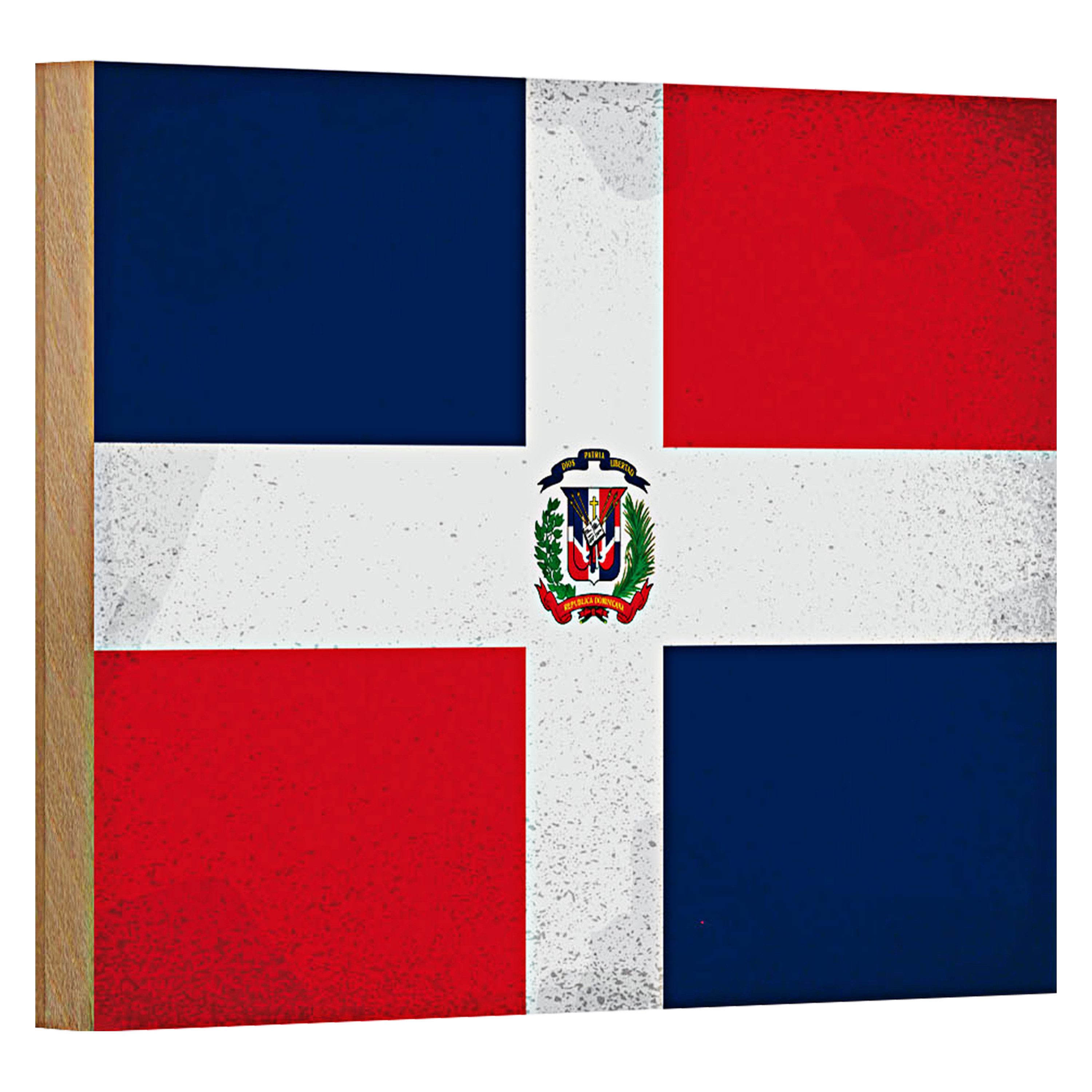 Dieses Holzschild im Vintage-Look zeigt die stolze Flagge der Dominikanischen Republik.