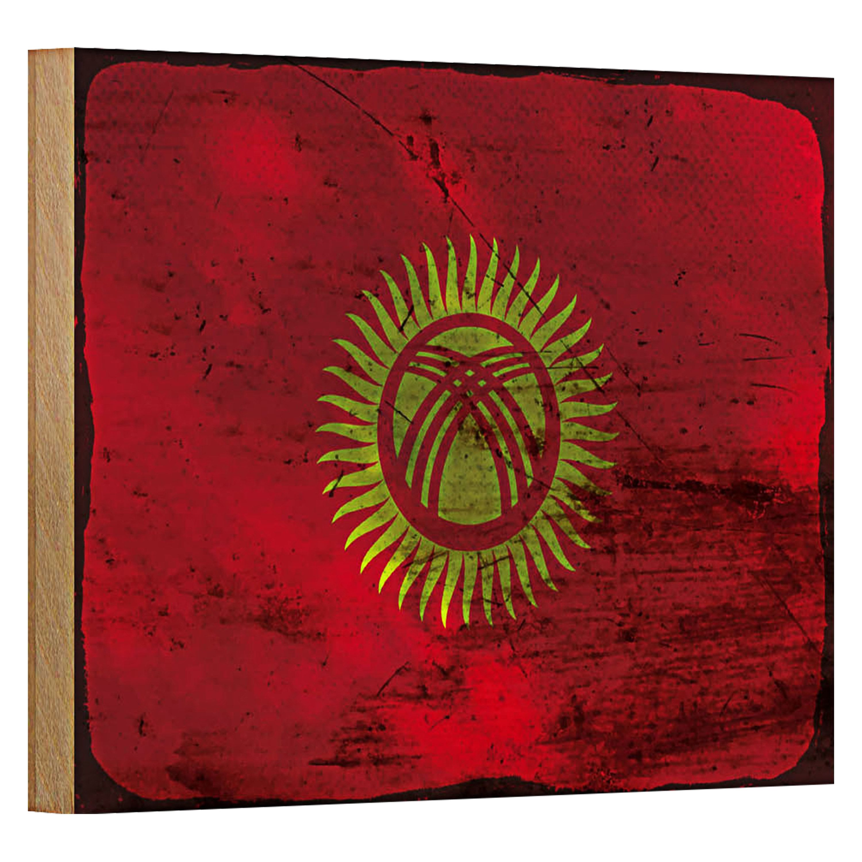 Dieses Vintage-Holzschild mit der Flagge von Kirgisistan fängt die Essenz eines stolzen Landes ein.