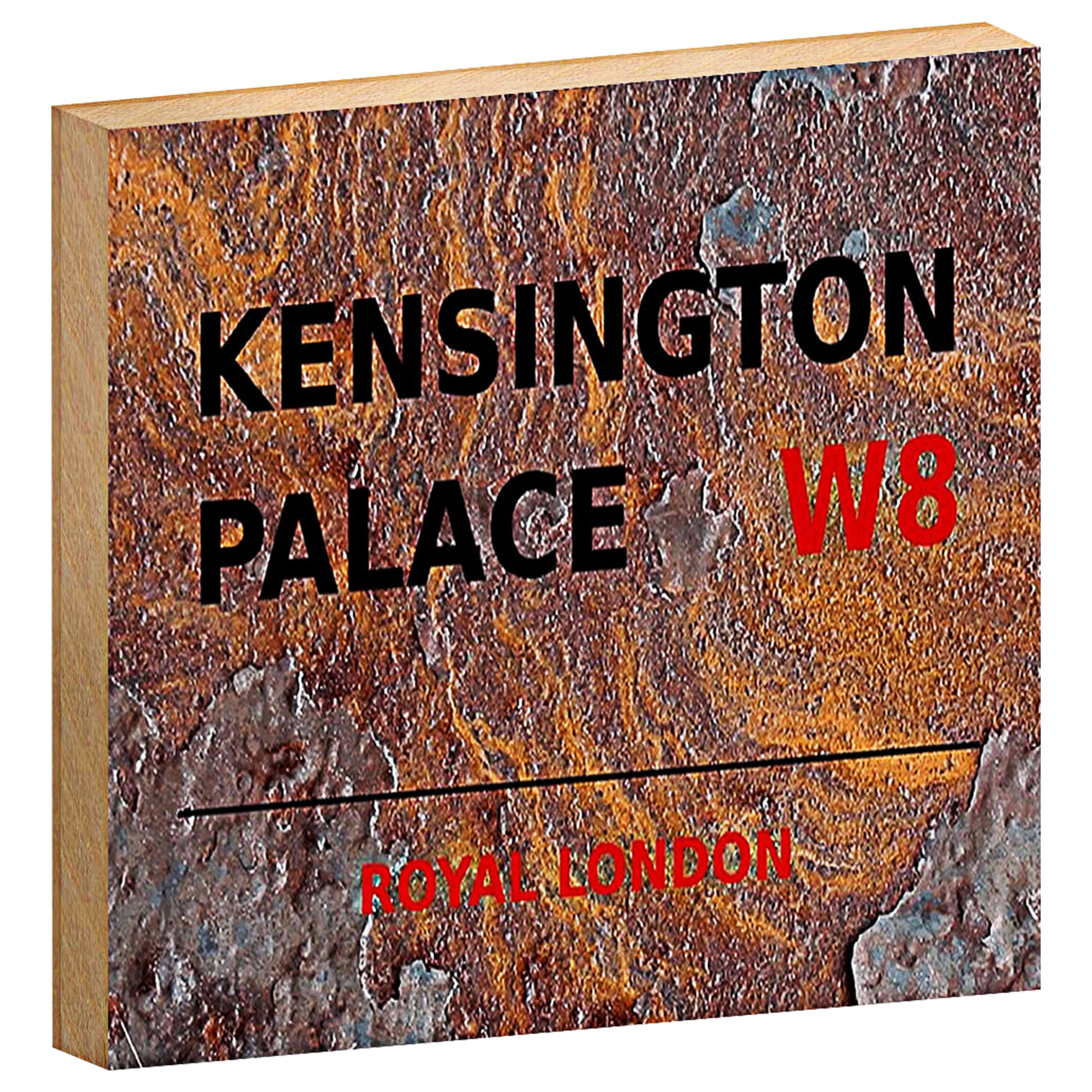 Dieses charmante Holzschild fängt die Essenz von Londons königlichem Erbe ein Mit seinem klassischen Design erinnert es an die majestätische Pracht des Kensington Palace.