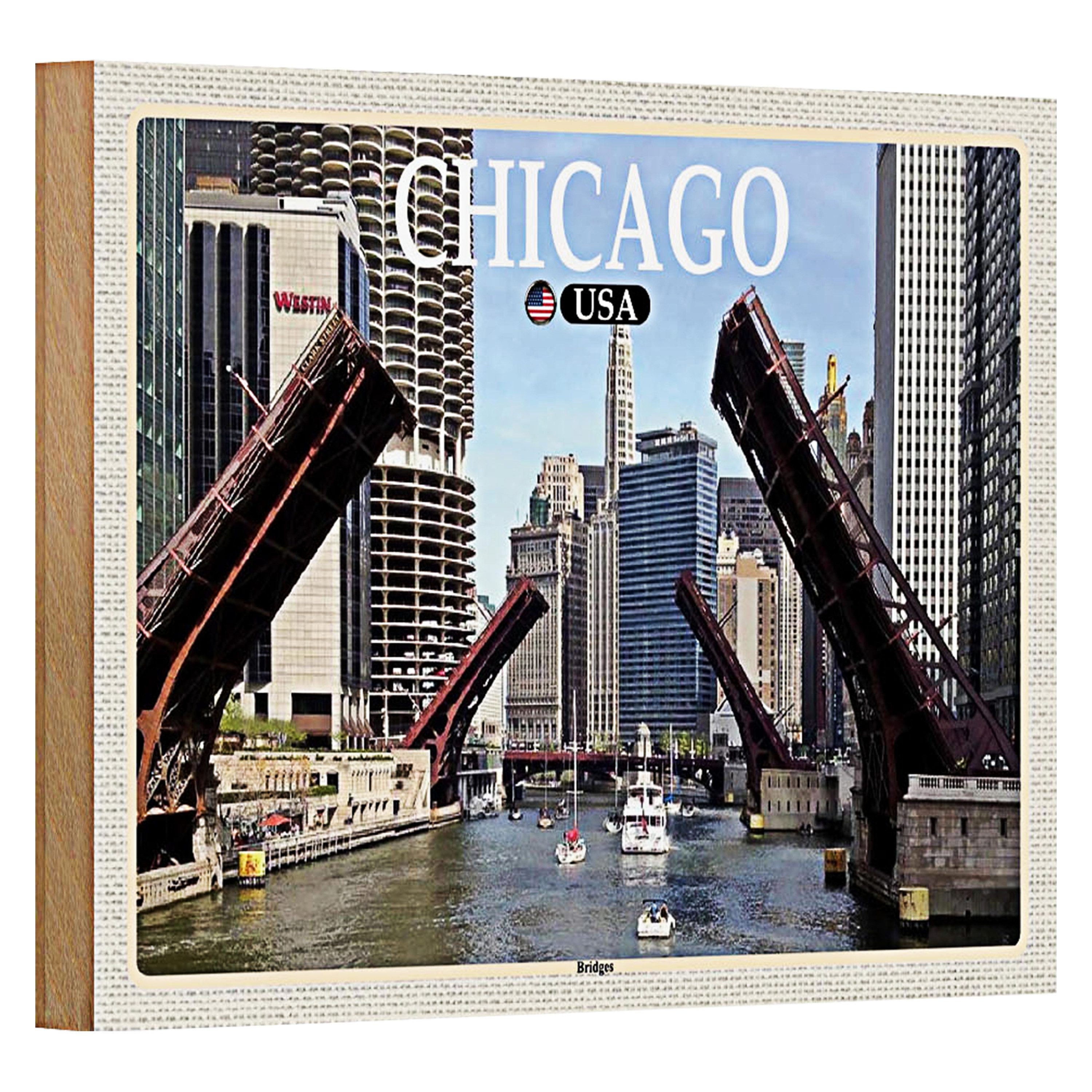Erleben Sie die majestätische Skyline von Chicago mit diesem charmanten Holzschild. Die ikonischen Brücken, die sich über den Chicago River erheben, erzählen Geschichten von Ingenieurskunst und urbanem Leben. Perfekt für Liebhaber der Windy City, bringt es einen Hauch von Abenteuer und Geschichte in Ihr Zuhause oder Büro. Ein Muss für jeden, der die pulsierende Energie dieser Metropole schätzt.Perfekt für Reisefans und Chicago-Liebhaber, die ihre Wände mit einem Hauch von urbanem Flair und Geschichte schmücken möchten. Ideal als Geschenk oder Dekoration.Schild aus qualitativ hochwertigem Holz. Keine scharfkantigen Stellen dank rundum umgeschlagene Kanten. Abgerundete Ecken mit vorgebohrten Löchern für eine einfache Befestigung an Wänden, Türen, Zäunen usw.