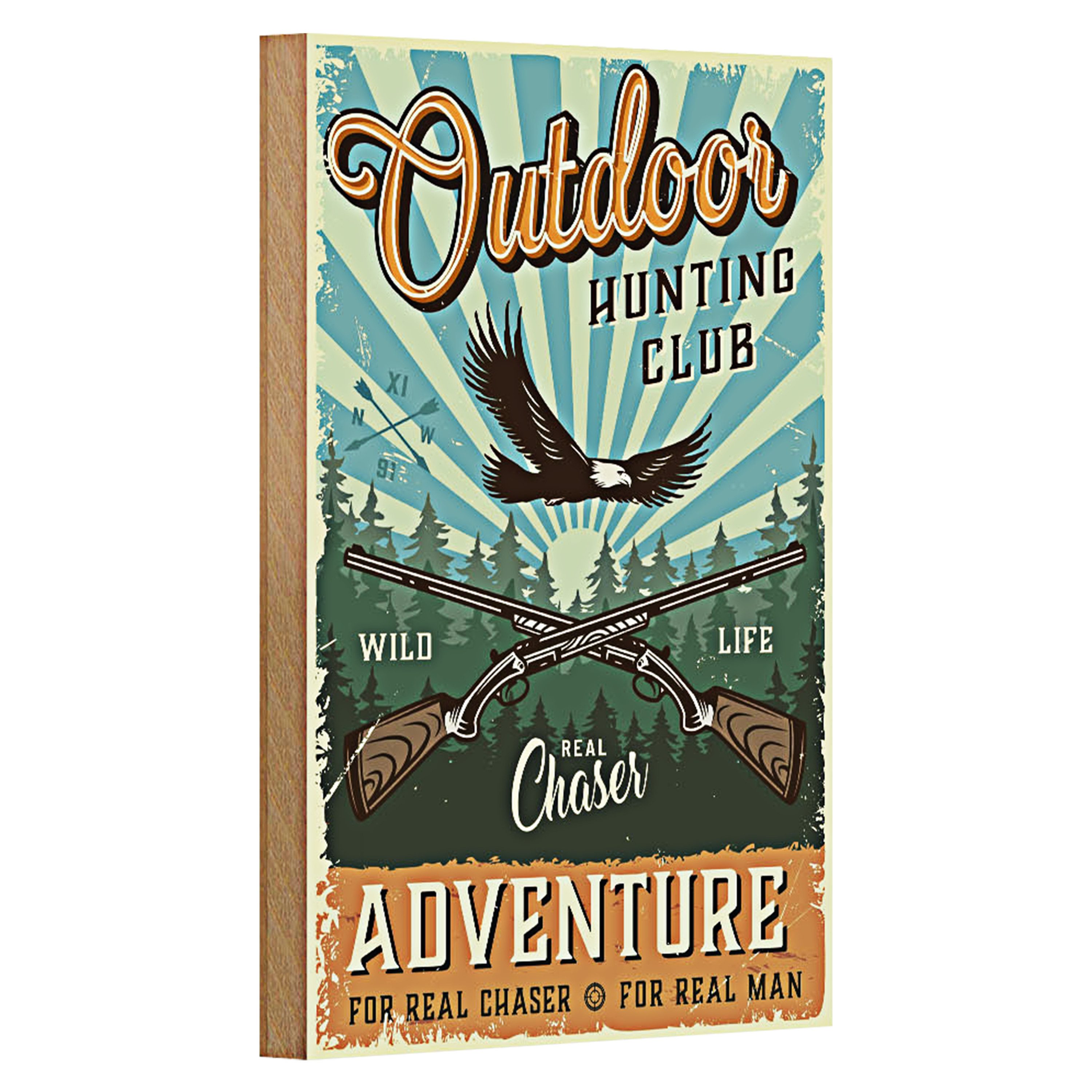 Tauchen Sie ein in die Welt des Outdoor Hunting Club Dieses nostalgische Holzschild fängt die Essenz von Abenteuer und Wildnis ein.