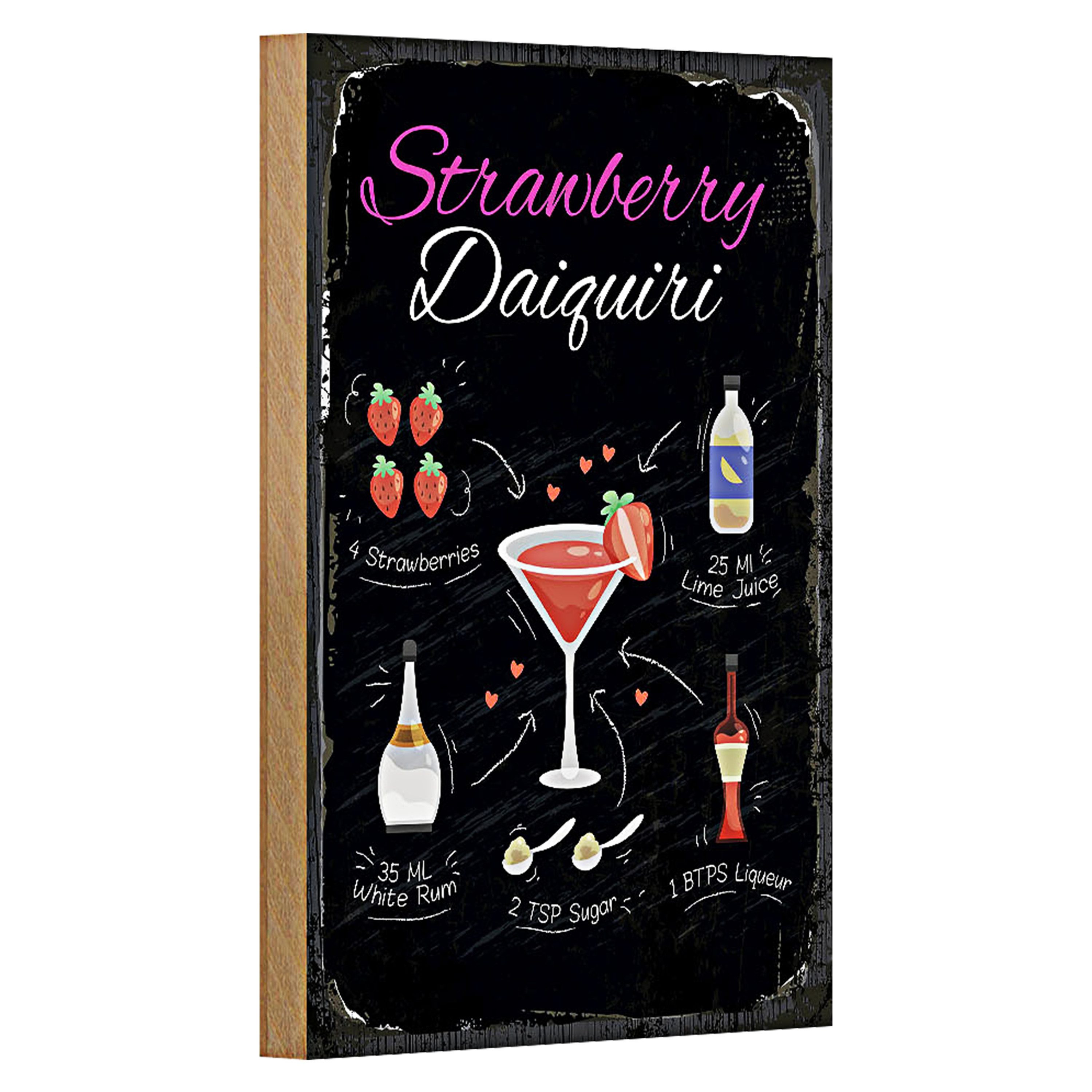 Tauchen Sie ein in die Welt der klassischen Cocktails mit diesem charmanten Holzschild. Das Strawberry Daiquiri Rezept, kunstvoll illustriert, bringt nostalgisches Flair in Ihre Küche oder Bar. Perfekt für Cocktail-Liebhaber und Retro-Enthusiasten, die das gewisse Etwas suchen. Ein dekoratives Highlight, das Geschichten von Sommerabenden und exotischen Abenteuern erzählt.Perfekt für Cocktail-Liebhaber und Retro-Fans, die ihre Küche oder Bar mit einem Hauch von Nostalgie verschönern möchten. Auch ideal als Geschenk für besondere Anlässe.Schild aus qualitativ hochwertigem Holz. Keine scharfkantigen Stellen dank rundum umgeschlagene Kanten. Abgerundete Ecken mit vorgebohrten Löchern für eine einfache Befestigung an Wänden, Türen, Zäunen usw.