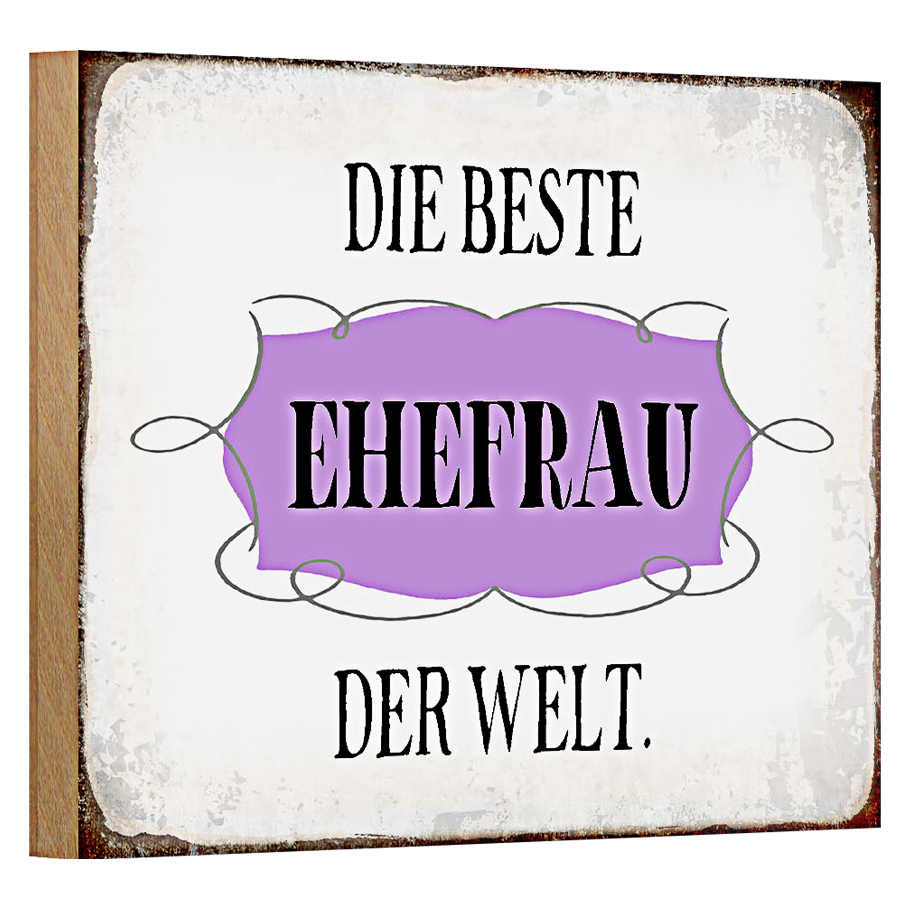 Dieses charmante Holzschild verkündet in stilvoller Schrift 'Die beste Ehefrau der Welt'. Mit seinem nostalgischen Flair und der eleganten lila Schrift auf abgenutztem Hintergrund, ist es ein perfektes Geschenk, das Liebe und Wertschätzung ausdrückt. Die kunstvollen Verzierungen und die rustikale Patina verleihen ihm einen besonderen Vintage-Charme. Ein ideales Geschenk für Geburtstage, Jahrestage oder einfach als liebevolle Aufmerksamkeit. Dieses Schild ist eine wunderbare Möglichkeit, der besten Ehefrau zu zeigen, wie sehr sie geschätzt wird. Schild aus qualitativ hochwertigem Holz. Keine scharfkantigen Stellen dank rundum umgeschlagene Kanten. Abgerundete Ecken mit vorgebohrten Löchern für eine einfache Befestigung an Wänden, Türen, Zäunen usw.