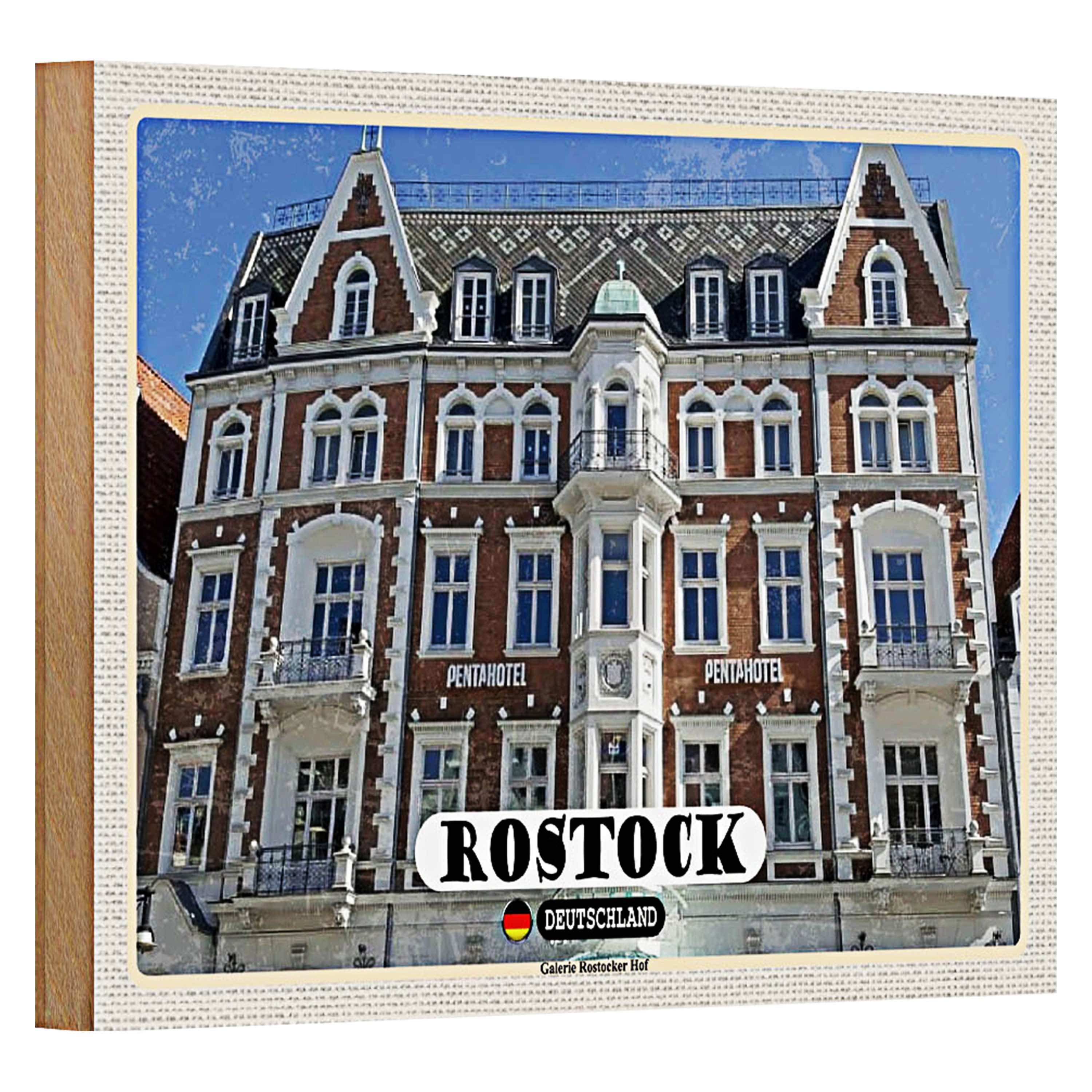 Dieses charmante Holzschild fängt die Essenz von Rostock ein, einer Stadt, die Geschichte und Moderne vereint.