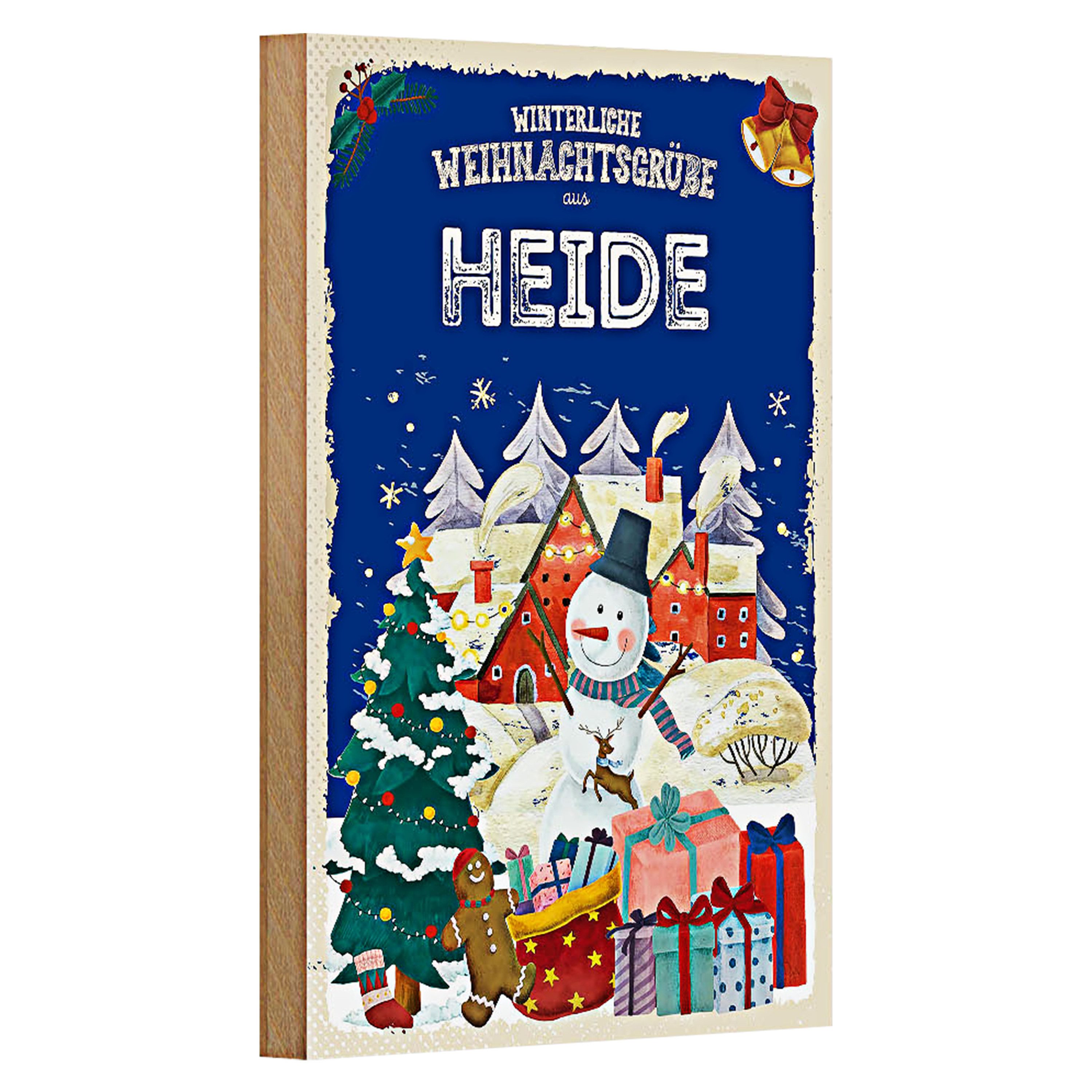 Tauchen Sie ein in die zauberhafte Winterwelt von Heide. Dieses charmante Holzschild fängt die Essenz der festlichen Jahreszeit ein, mit einem fröhlichen Schneemann und liebevoll verpackten Geschenken. Perfekt für alle, die die Magie von Weihnachten in ihrem Zuhause spüren möchten. Ein nostalgisches Stück, das Wärme und Freude verbreitet.Ideal für die festliche Dekoration in Ihrem Zuhause oder als besonderes Geschenk für Freunde und Familie, die den Charme von Weihnachten lieben.Schild aus qualitativ hochwertigem Holz. Keine scharfkantigen Stellen dank rundum umgeschlagene Kanten. Abgerundete Ecken mit vorgebohrten Löchern für eine einfache Befestigung an Wänden, Türen, Zäunen usw.