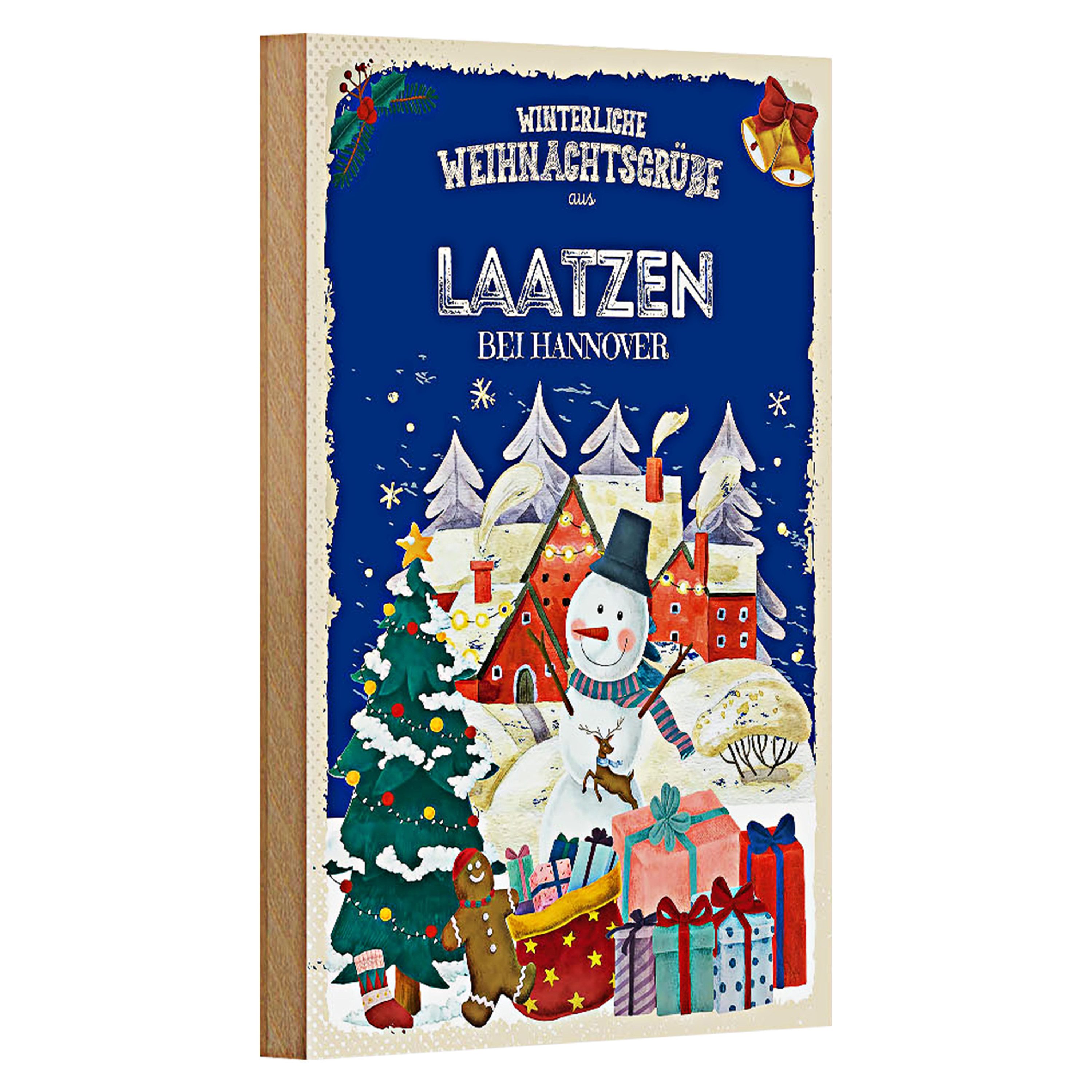Tauchen Sie ein in die zauberhafte Winterwelt von Laatzen bei Hannover. Dieses nostalgische Holzschild fängt die Magie der Weihnachtszeit ein, mit einem fröhlichen Schneemann, festlich geschmückten Tannen und einer idyllischen Winterlandschaft. Perfekt, um Ihrem Zuhause einen Hauch von festlicher Freude und Gemütlichkeit zu verleihen. Ein Muss für Liebhaber der Weihnachtszeit und Sammler nostalgischer Dekorationen.Perfekt für die weihnachtliche Dekoration in Ihrem Zuhause oder als charmantes Geschenk für Freunde und Familie, die den Zauber der Weihnachtszeit lieben.Schild aus qualitativ hochwertigem Holz. Keine scharfkantigen Stellen dank rundum umgeschlagene Kanten. Abgerundete Ecken mit vorgebohrten Löchern für eine einfache Befestigung an Wänden, Türen, Zäunen usw.