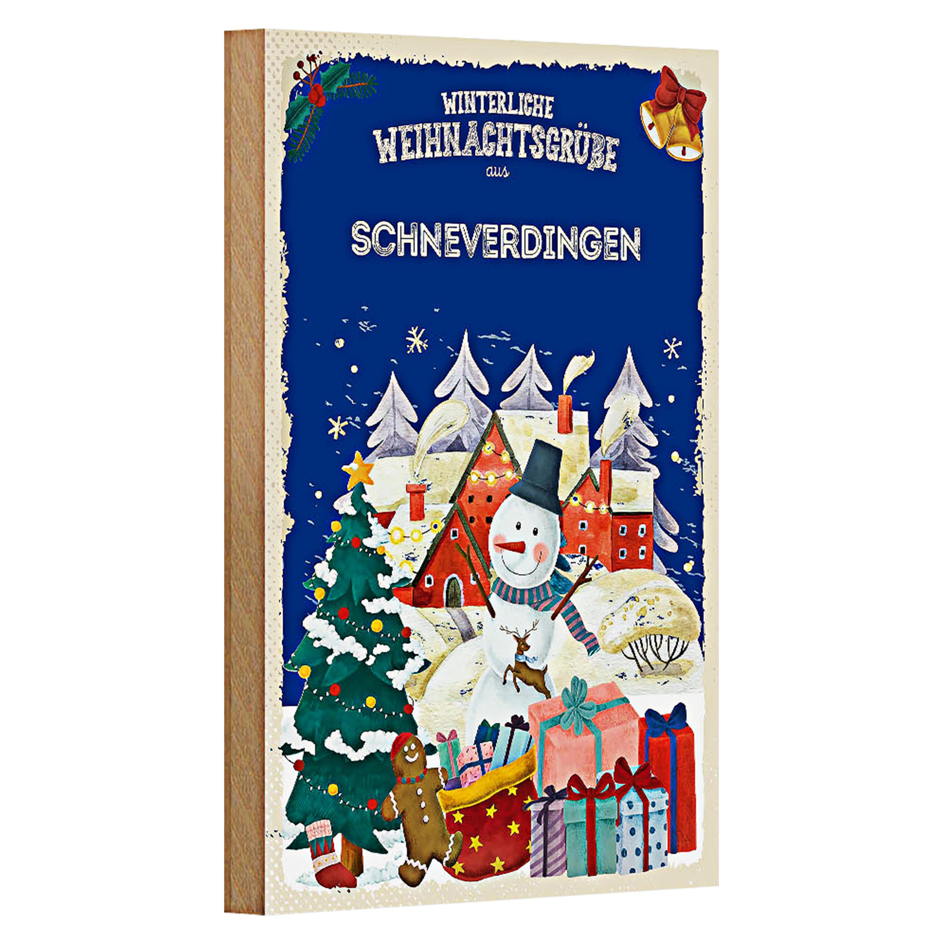 Tauchen Sie ein in die zauberhafte Winterwelt von Schneverdingen mit diesem charmanten Holzschild.
