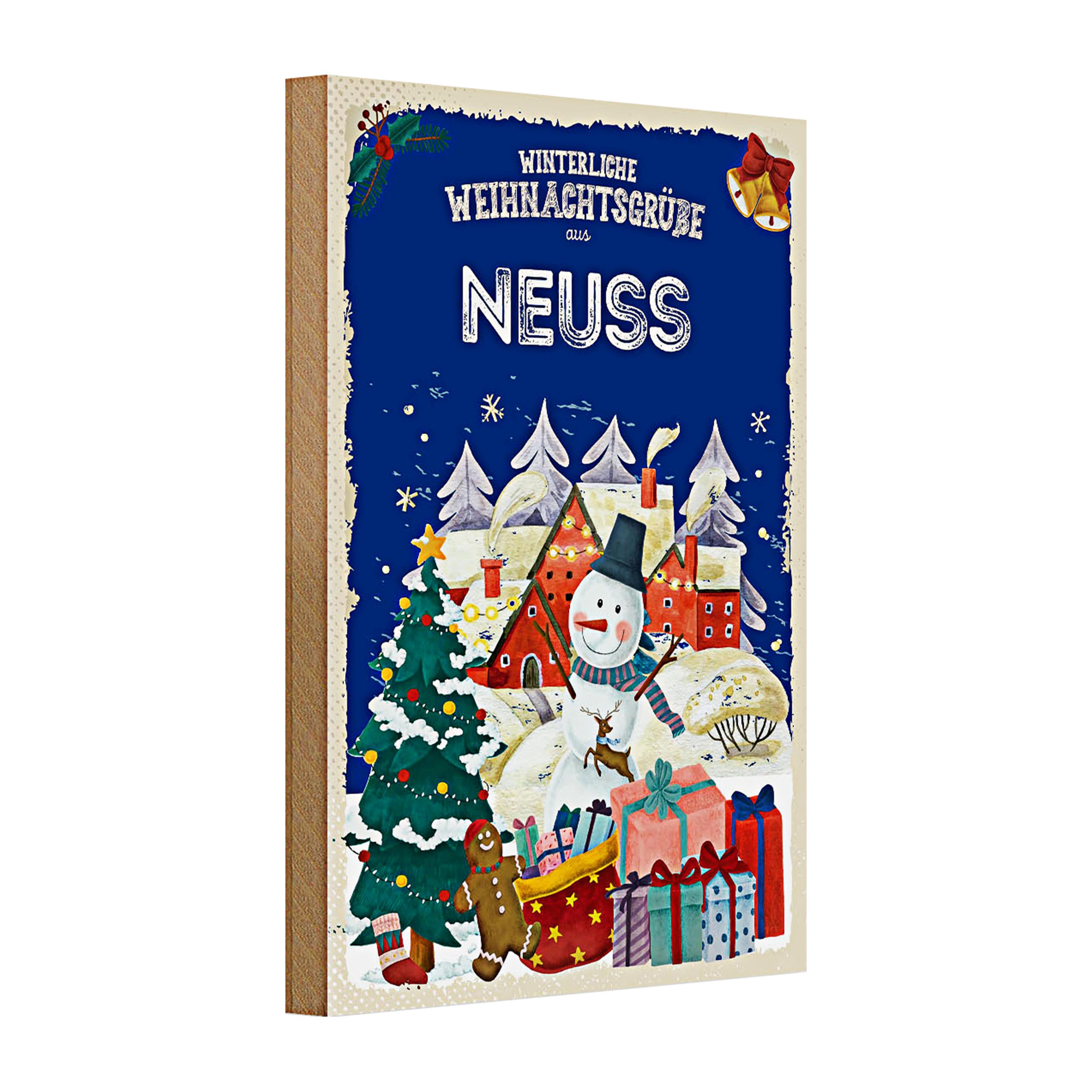 Tauchen Sie ein in die zauberhafte Winterwelt von Neuss mit diesem charmanten Holzschild. Ein fröhlicher Schneemann, umgeben von festlichen Geschenken und einem geschmückten Weihnachtsbaum, bringt die Magie der Feiertage direkt in Ihr Zuhause. Perfekt für alle, die den nostalgischen Charme der Weihnachtszeit lieben und ein Stück Neusser Winterzauber erleben möchten.Dieses Holzschild eignet sich hervorragend als festliche Dekoration für Ihr Zuhause oder als besonderes Geschenk für Freunde und Familie, die Neuss lieben.