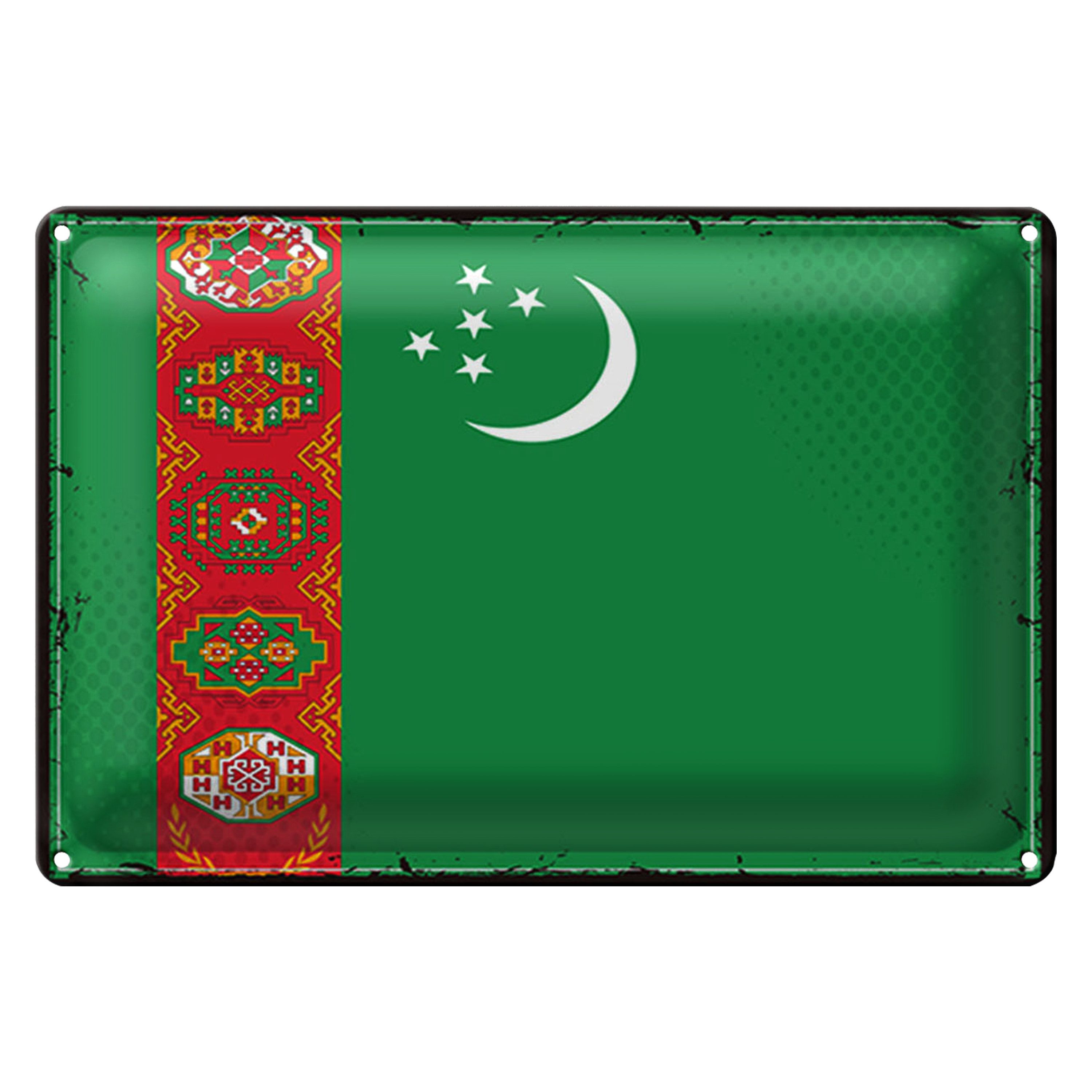 Metallschild Blechschild Flagge Turkmenistan 30x20cm Retro Turkmenistan