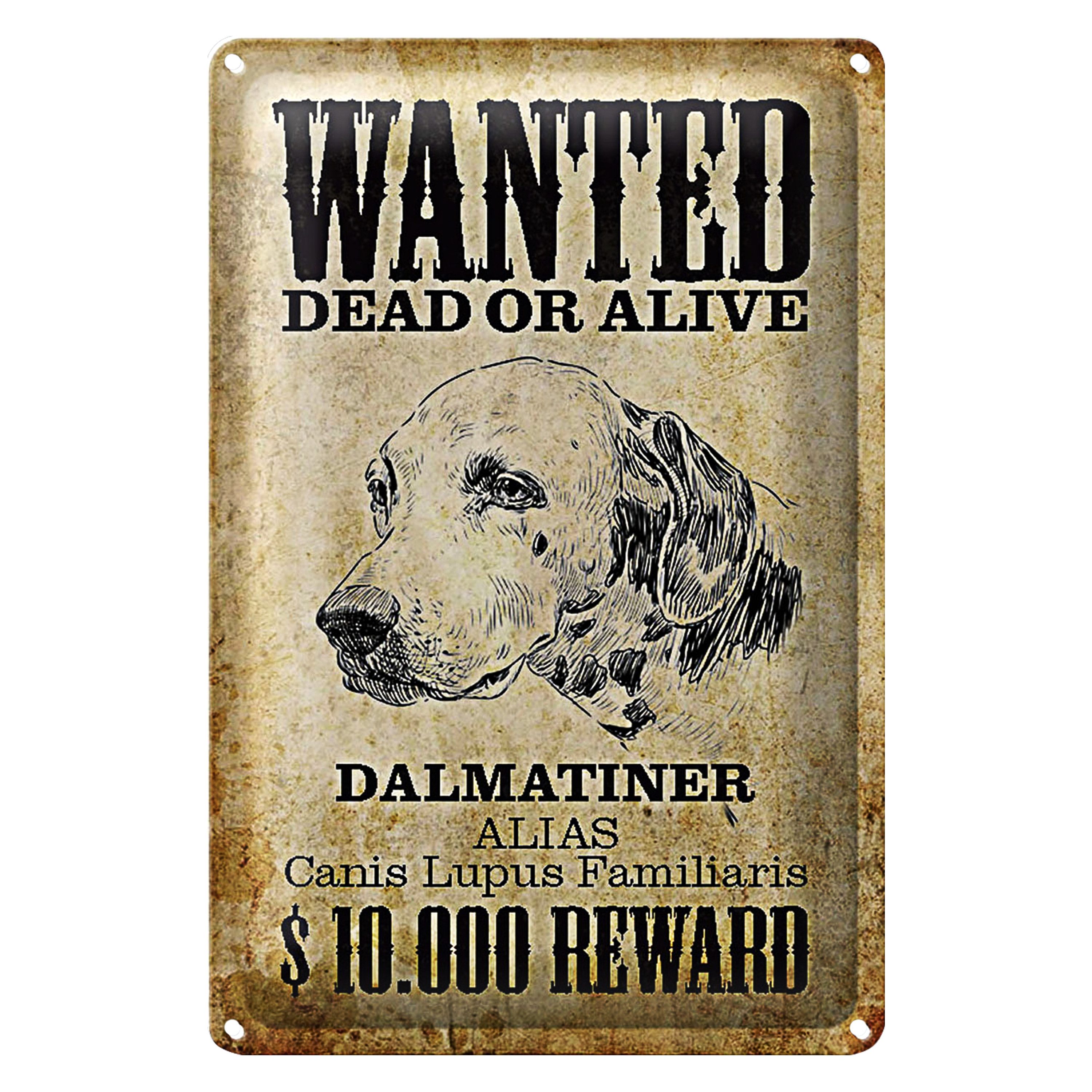 Metallschild Hund 12x18cm wanted dead Dalmatiner