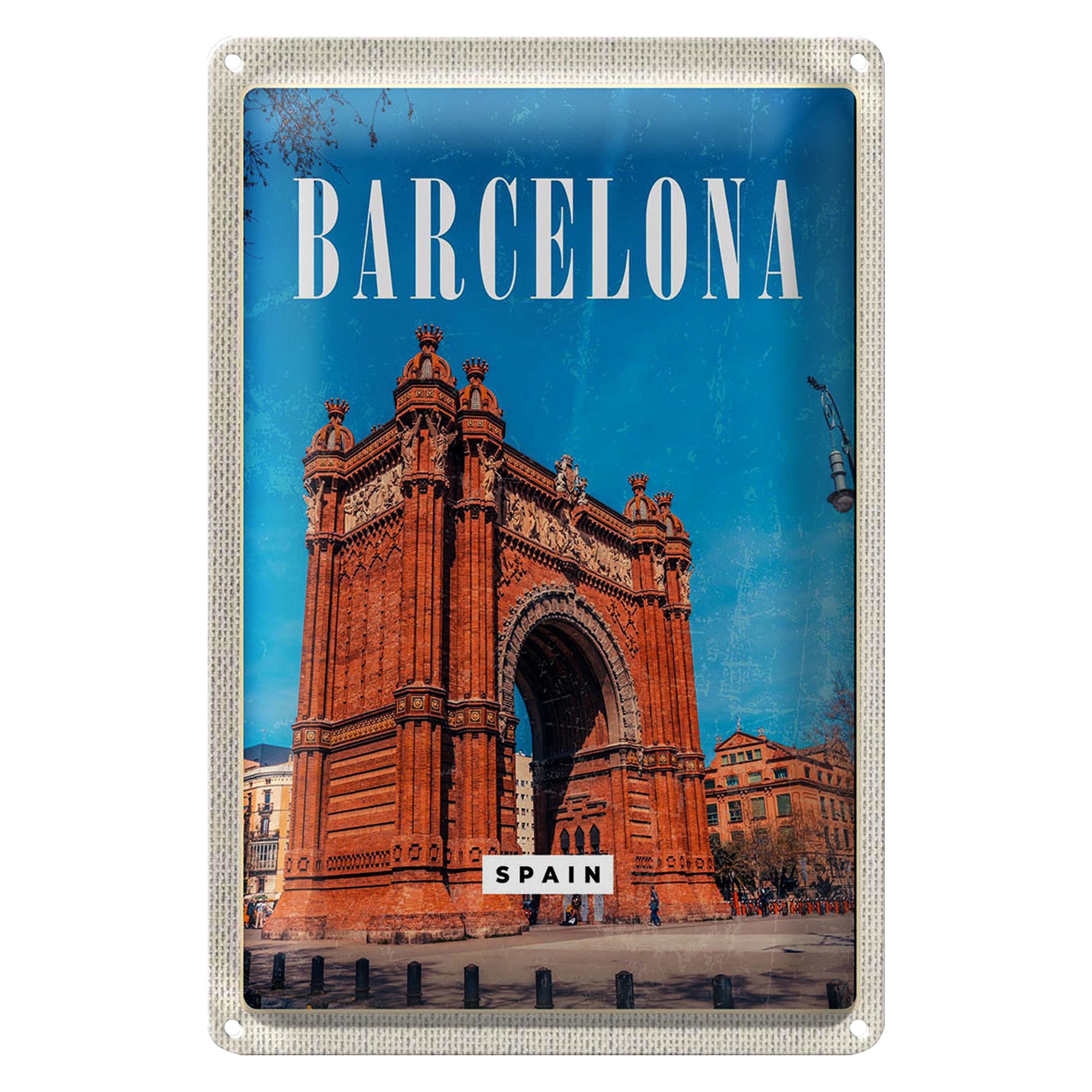 Metallschild Reise 12x18cm Barcelona Spain Architektur Retro