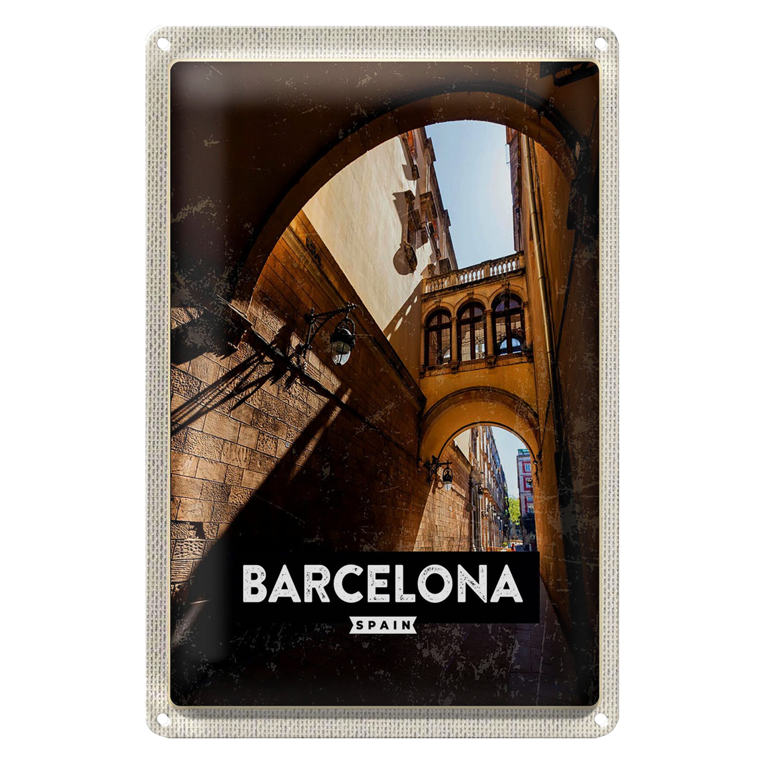 Metallschild Reise 12x18cm Barcelona Spain Retro Architektur