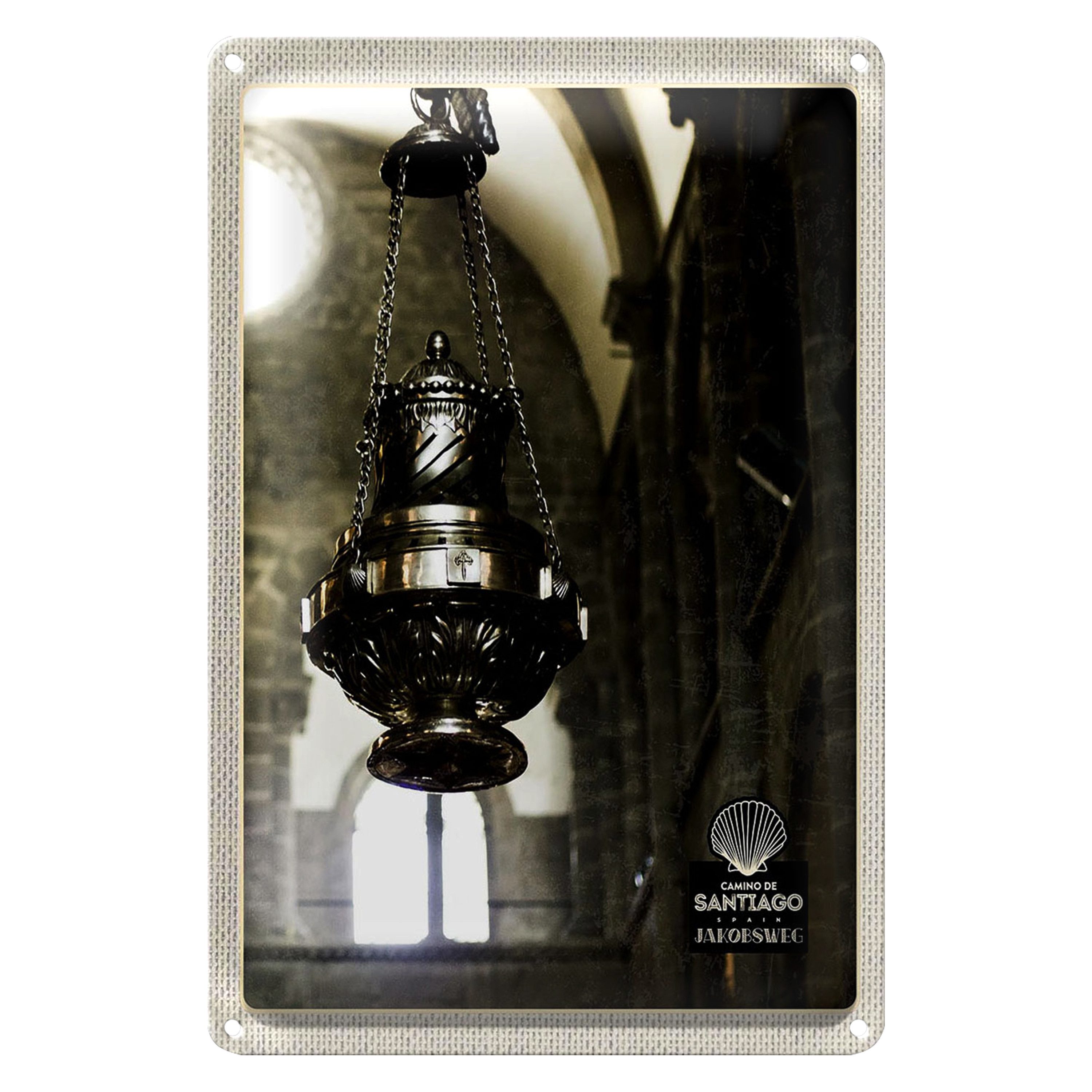 Metallschild Reise 12x18cm Spanien Kirche Laterne Mittelalter