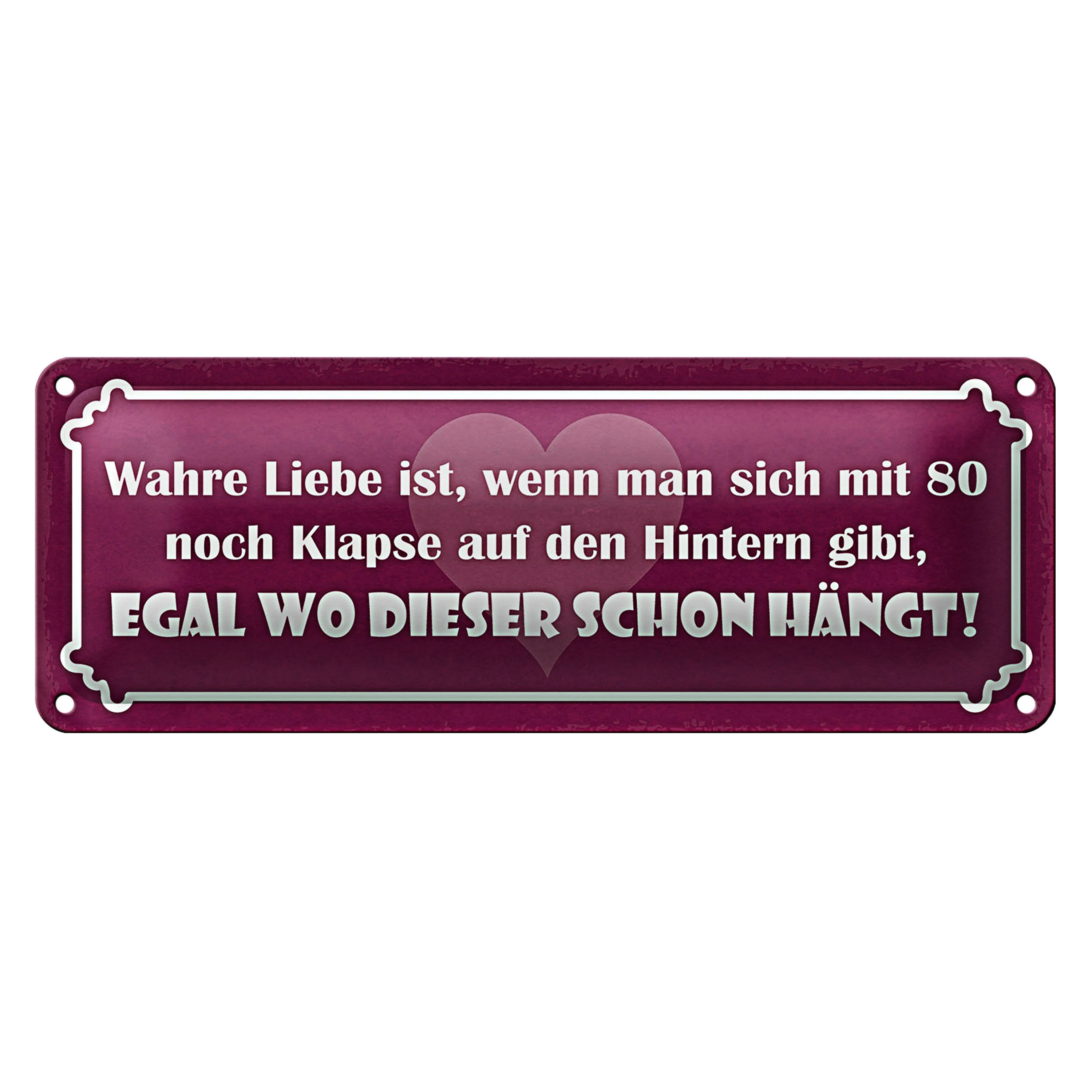 Metallschild Blechschild Spruch 27x10cm Liebe mit 80 Klapse auf Hintern Dekoration