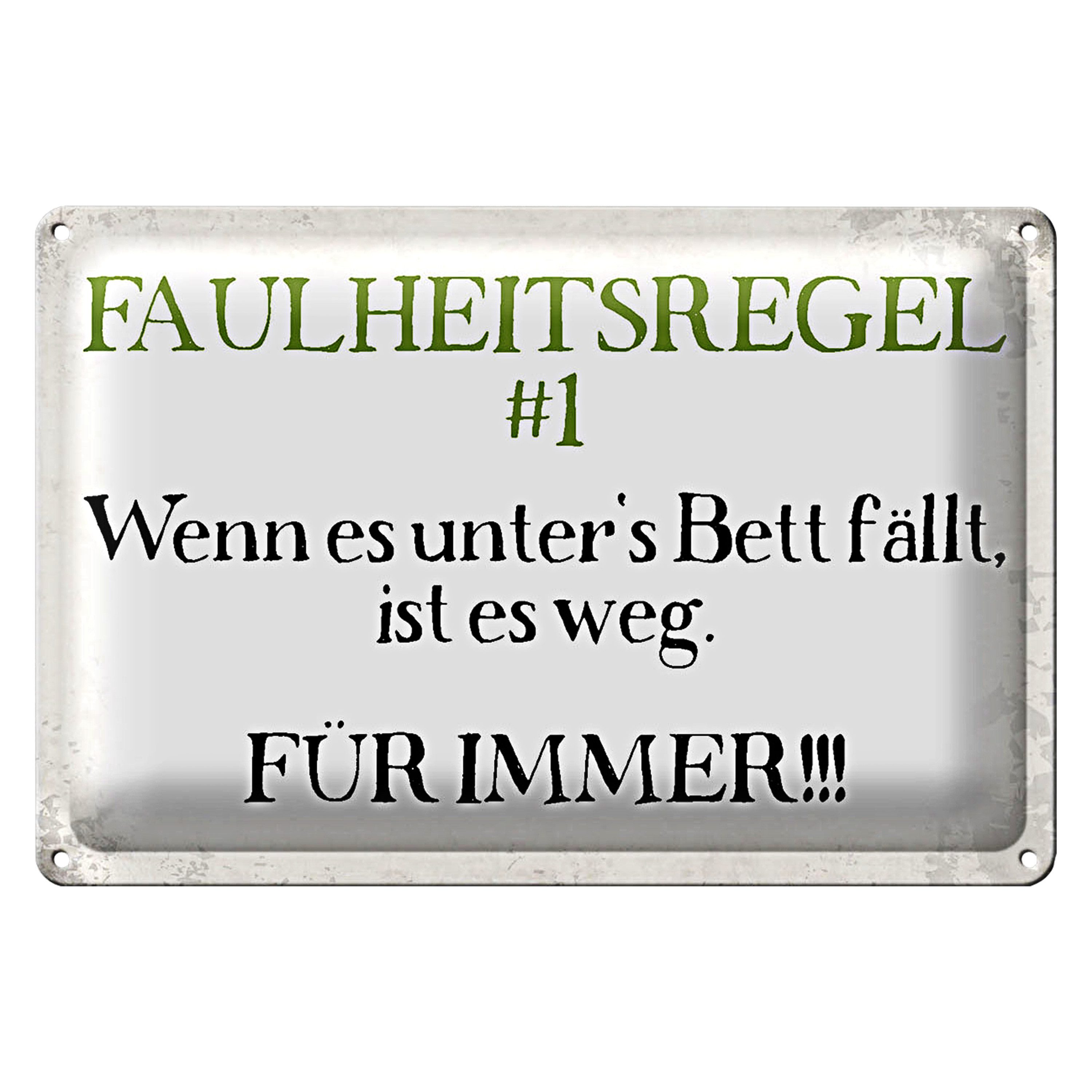 Metallschild Spruch 18x12cm Faulheitsregel 1 Retro
