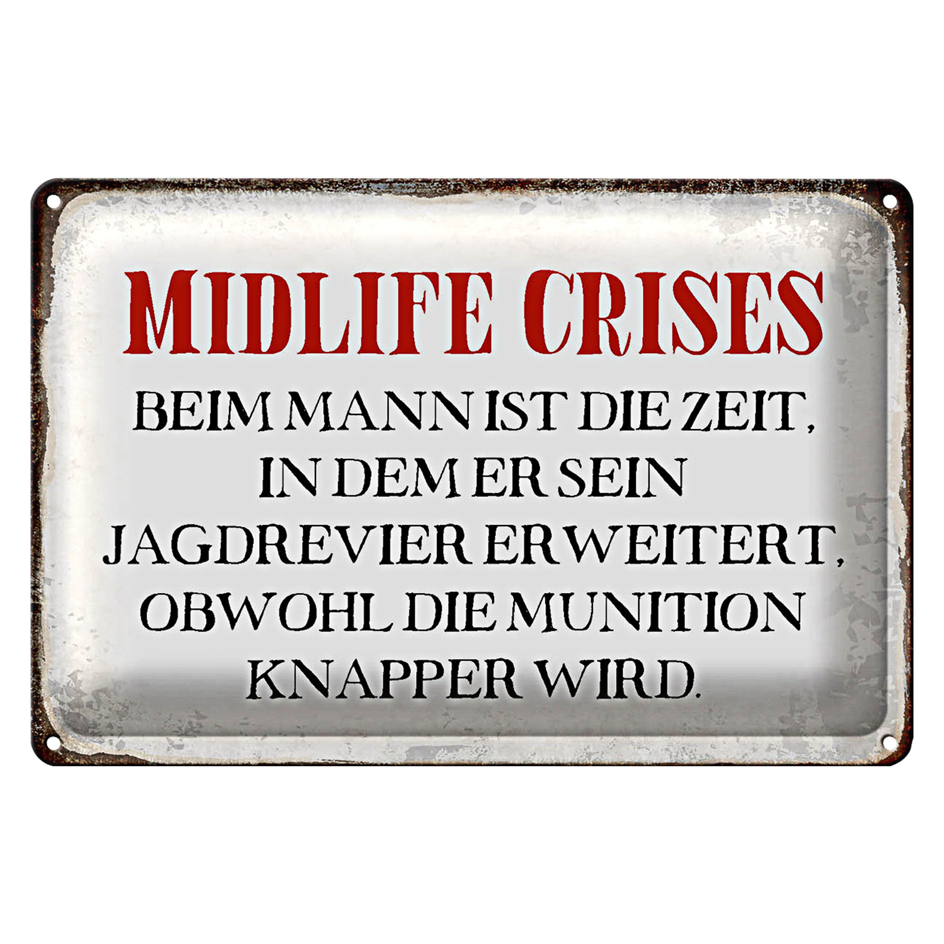 Metallschild Spruch 18x12cm Midlife crises beim Mann Retro