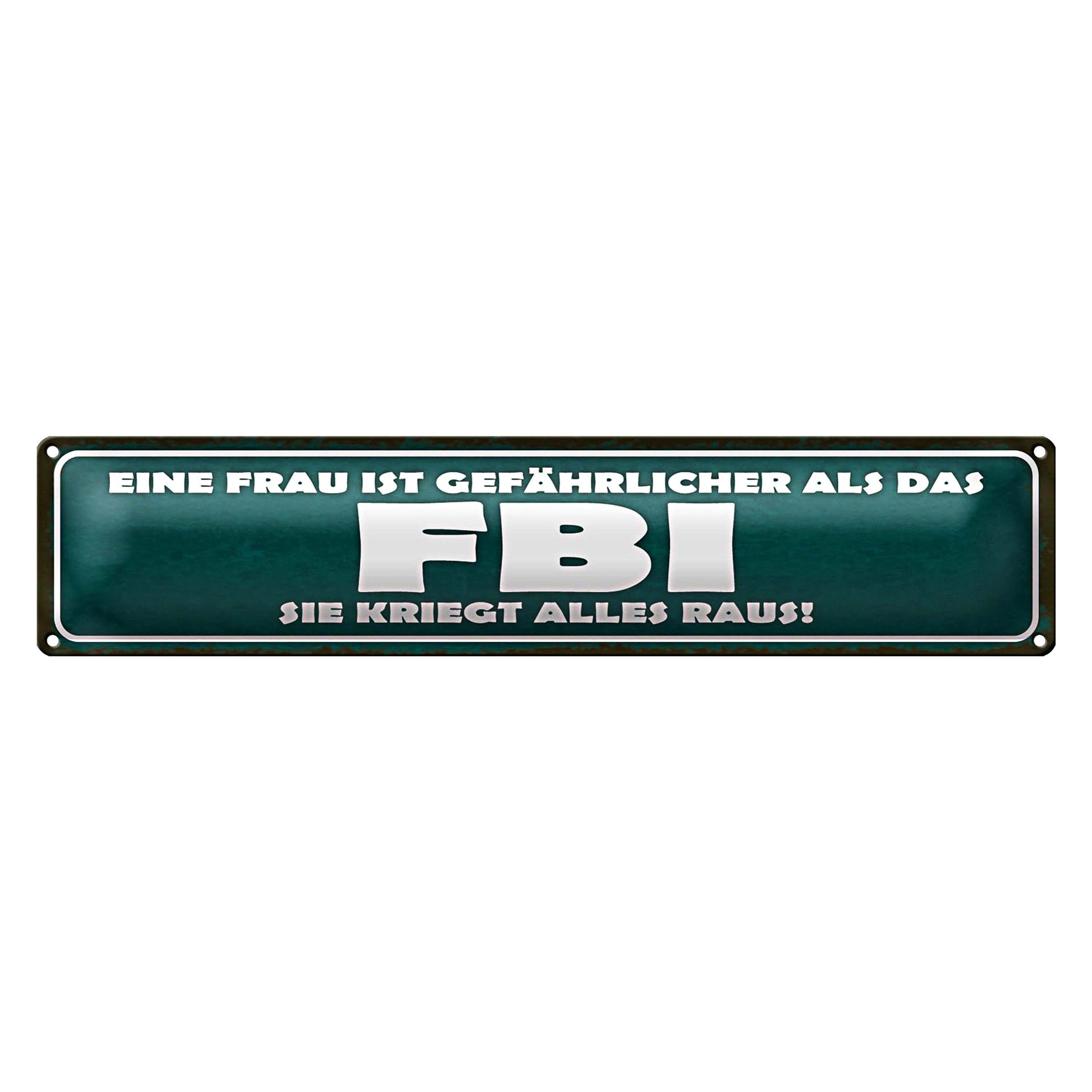 Metallschild Blechschild Spruch 46x10cm Frau ist gefährlicher als FBI Dekoration