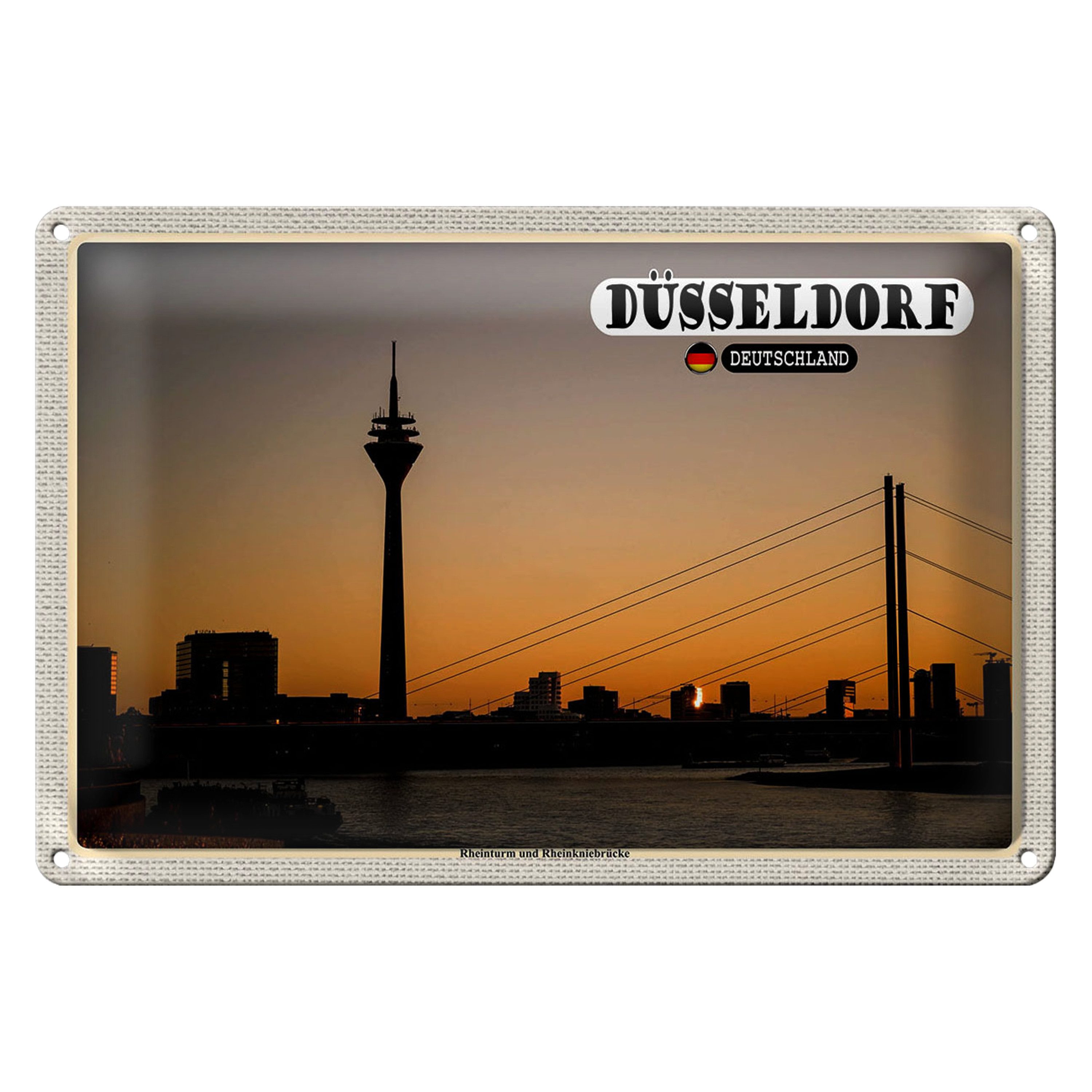 Roomando Metallschild Städte Düsseldorf Rheinturm Rheinkniebrücke 18x12cm
