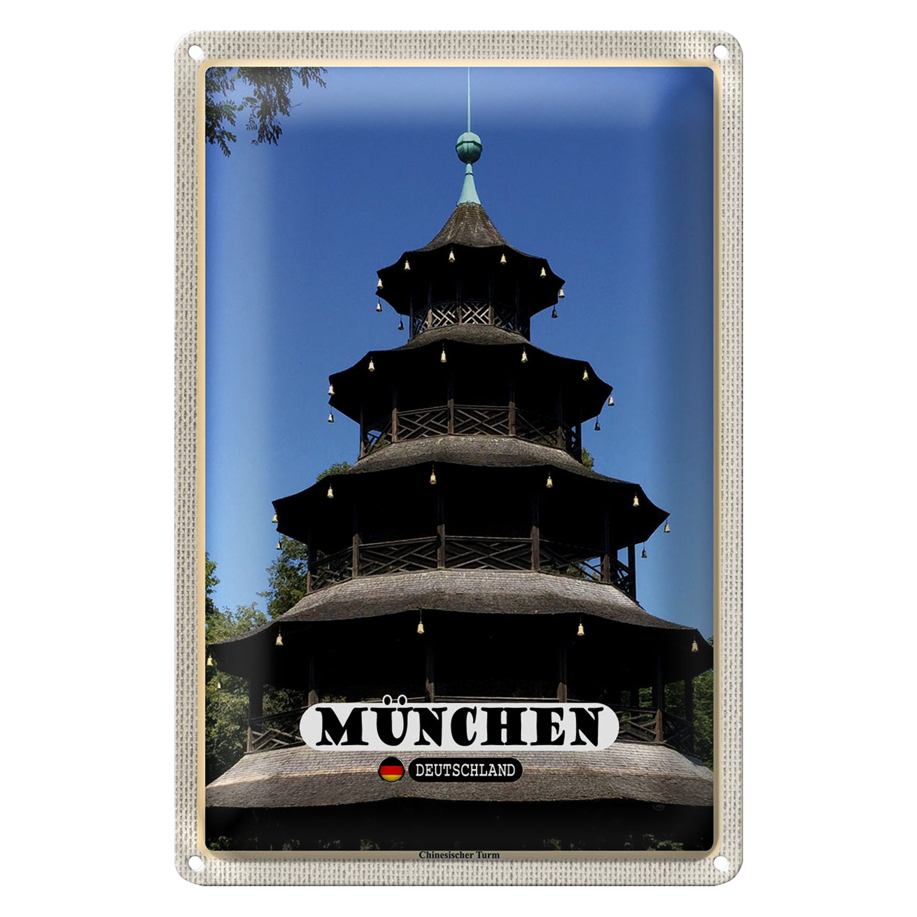 • Hochwertiges Blechschild mit Münchens Chinesischem Turm.