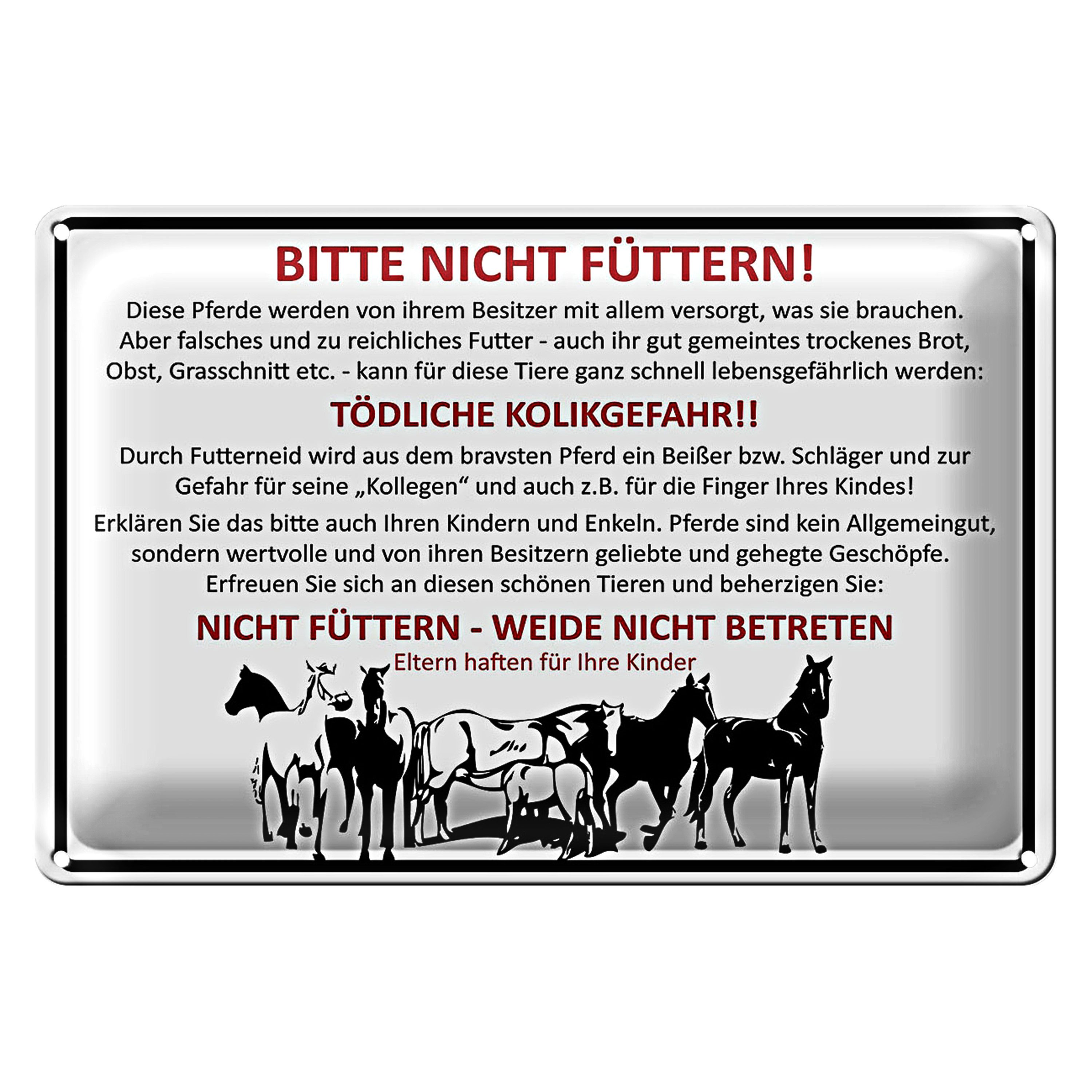 Metallschild Tiere 18x12cm bitte nicht füttern Pferde Verbot