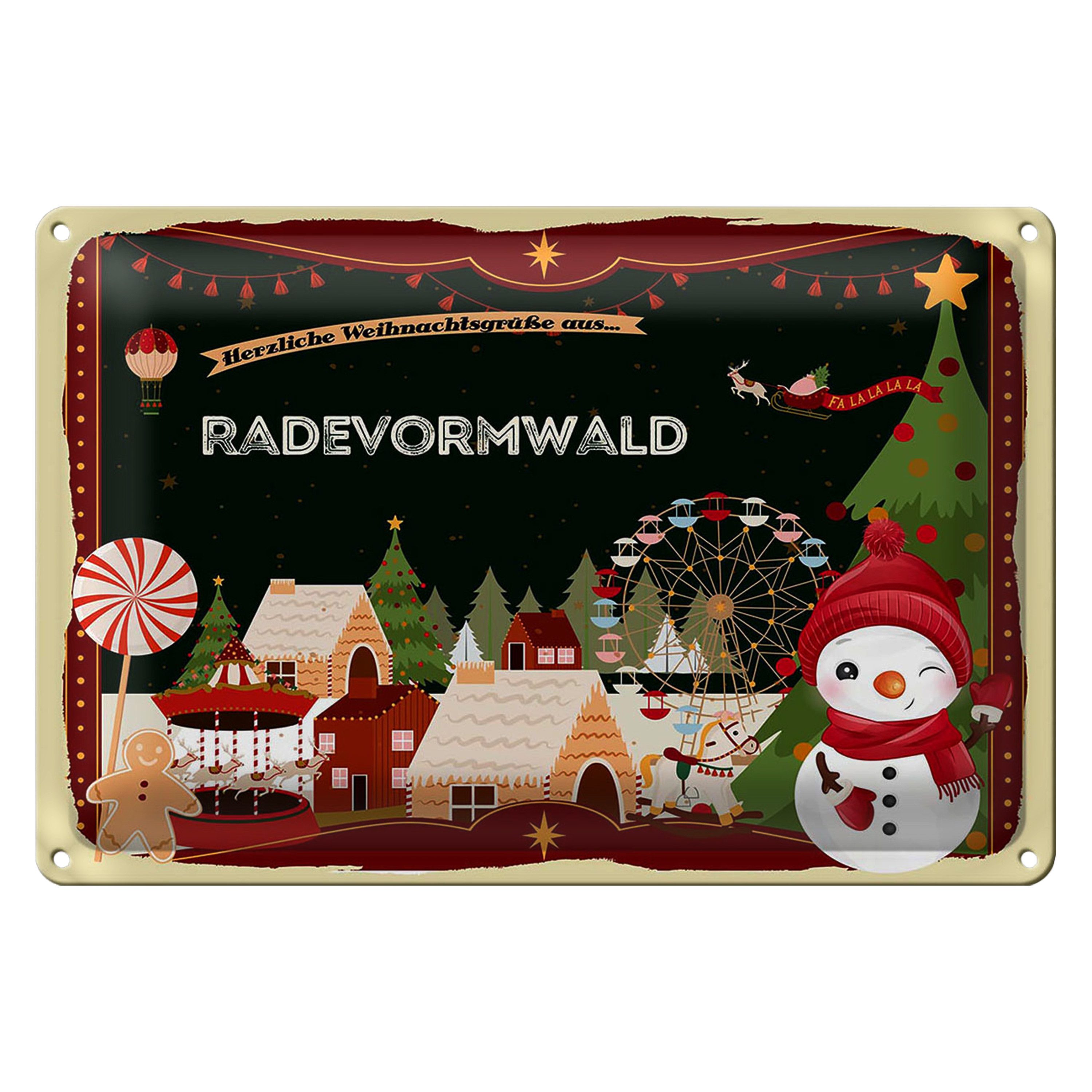 Metallschild Weihnachten Grüße RADEVORMWALD 18x12cm