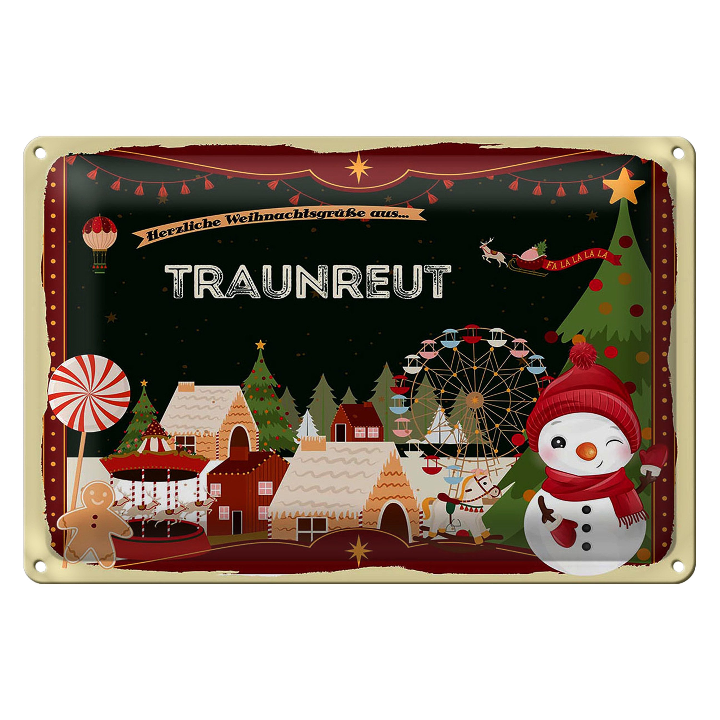 Metallschild Weihnachten Grüße TRAUNREUT 18x12cm