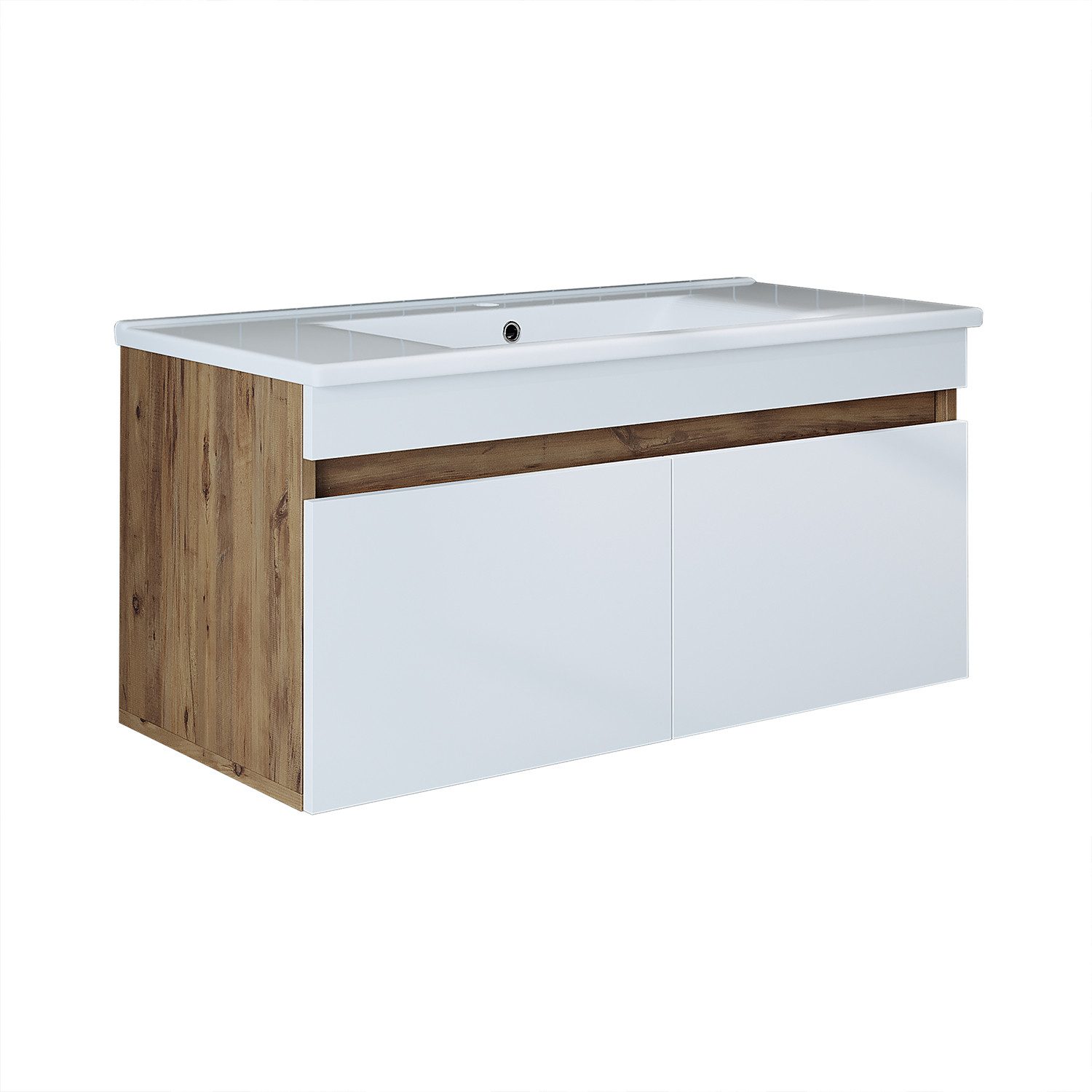 Keramik Waschbecken, HBT: 45,5 x 100 x 15 cm ( Ohne Wasserhahn und Ablaufgarnitür )