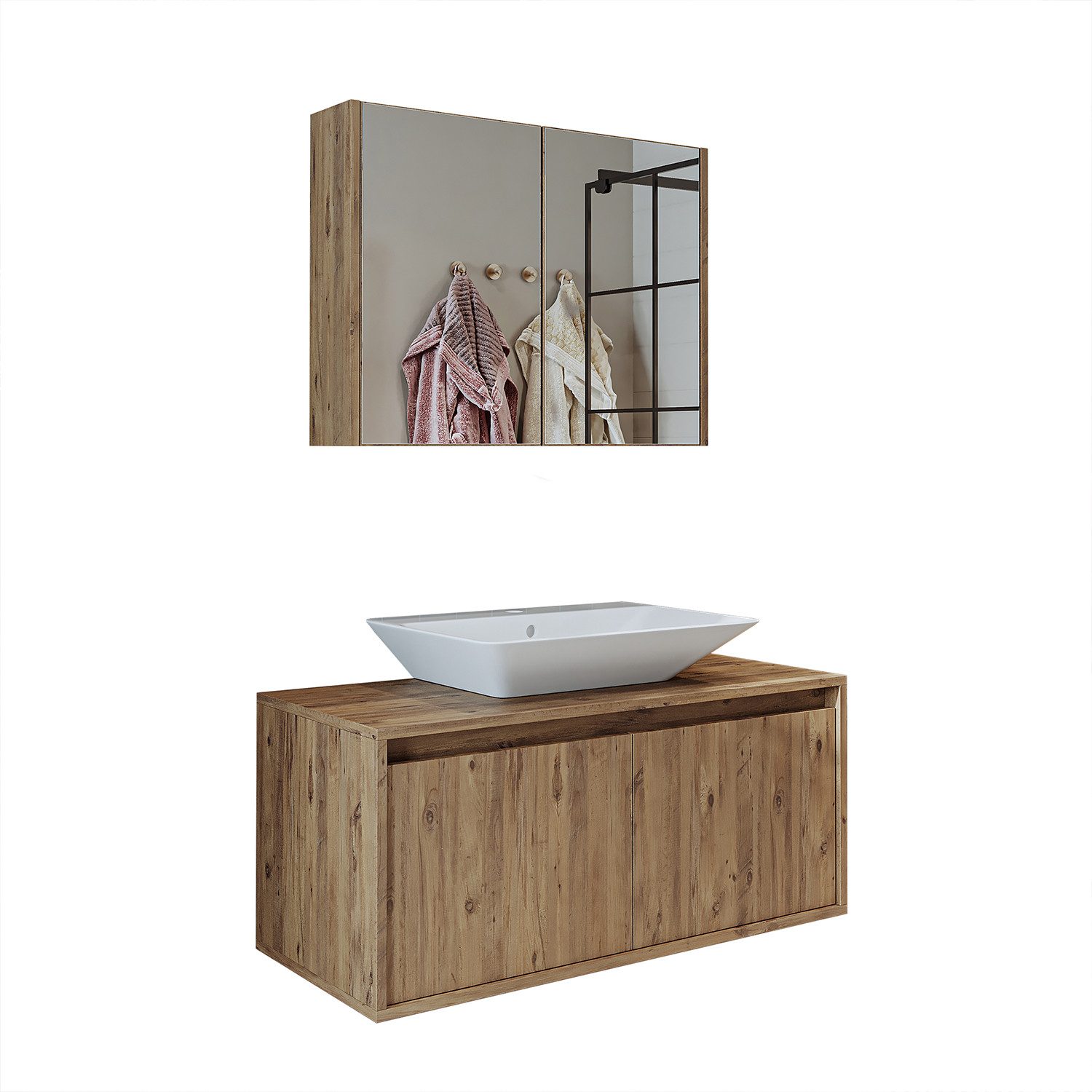 Lieferumfang: 1x Spiegelschrank, 1x Waschbeckenunterschrank mit 1x Keramik Waschbecken. ( Ohne Wasserhahn und Ablaufgarnitür )