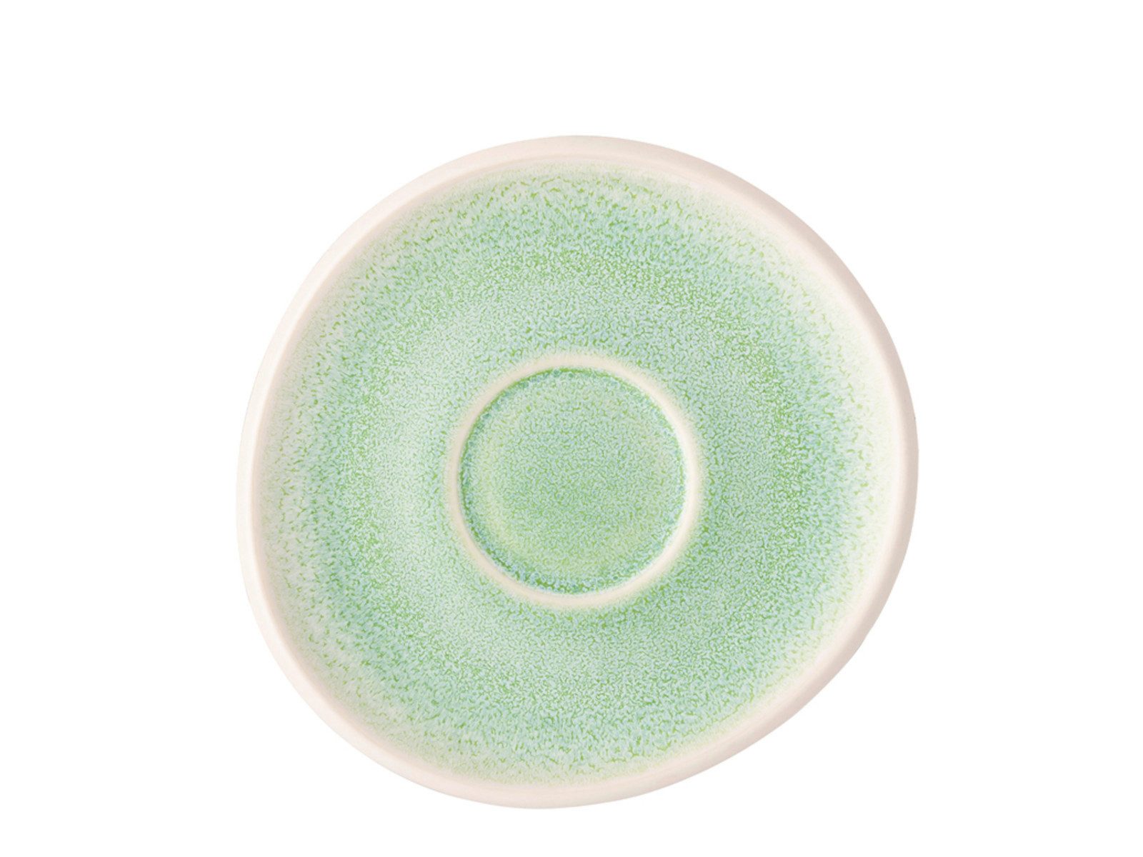 Die Rosenthal Junto Jungle Kombi-Untertasse verbindet stilvolle Eleganz mit einer natürlichen, handwerklichen Note. Ihre leicht unregelmäßige Form und die individuelle Glasur verleihen ihr eine besondere Ästhetik, die perfekt zur dazugehörigen Kombi-Obertasse passt. Mit einem Durchmesser von 15,5 cm bietet sie genügend Platz für Tasse, Löffel oder ein kleines Gebäckstück.