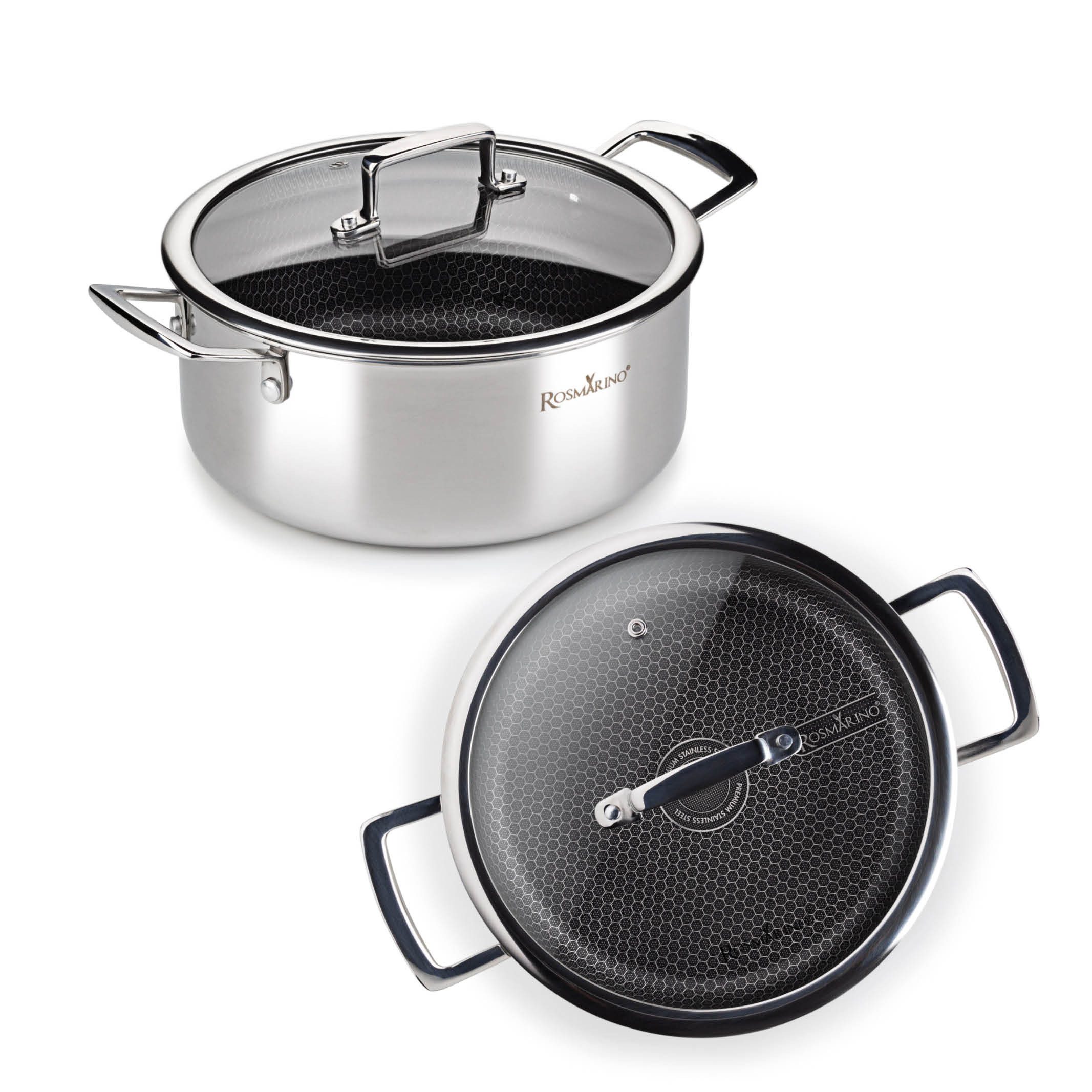 Die Rosmarino HexaPRO Kochpfanne kombiniert modernstes Kochgeschirr mit herausragender Funktionalität. Dank ihrer hybriden Materialkonstruktion aus Edelstahl, Aluminium und einer langlebigen Antihaftbeschichtung mit Laserstruktur sorgt sie für gleichmäßige Hitzeverteilung und perfekte Bratergebnisse.