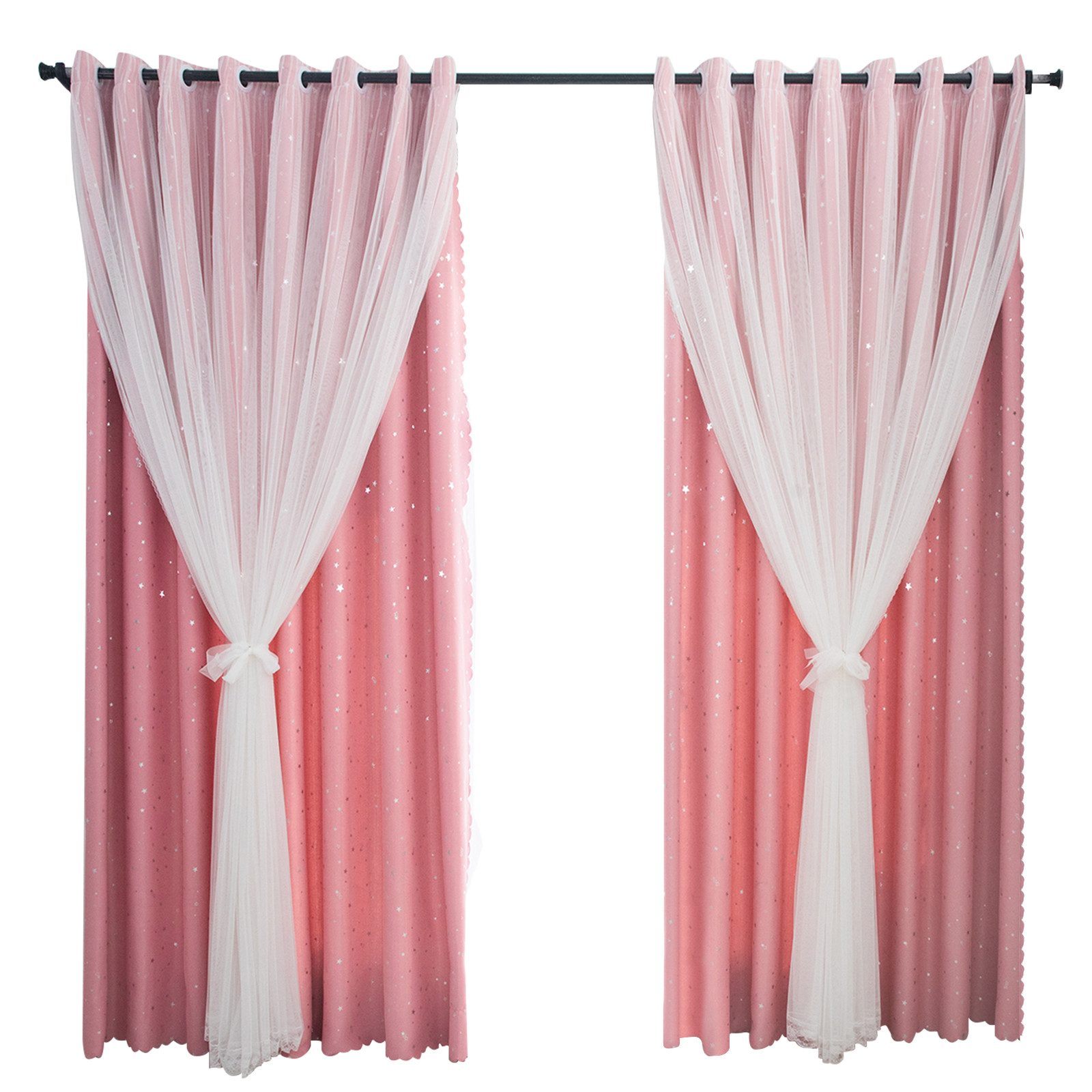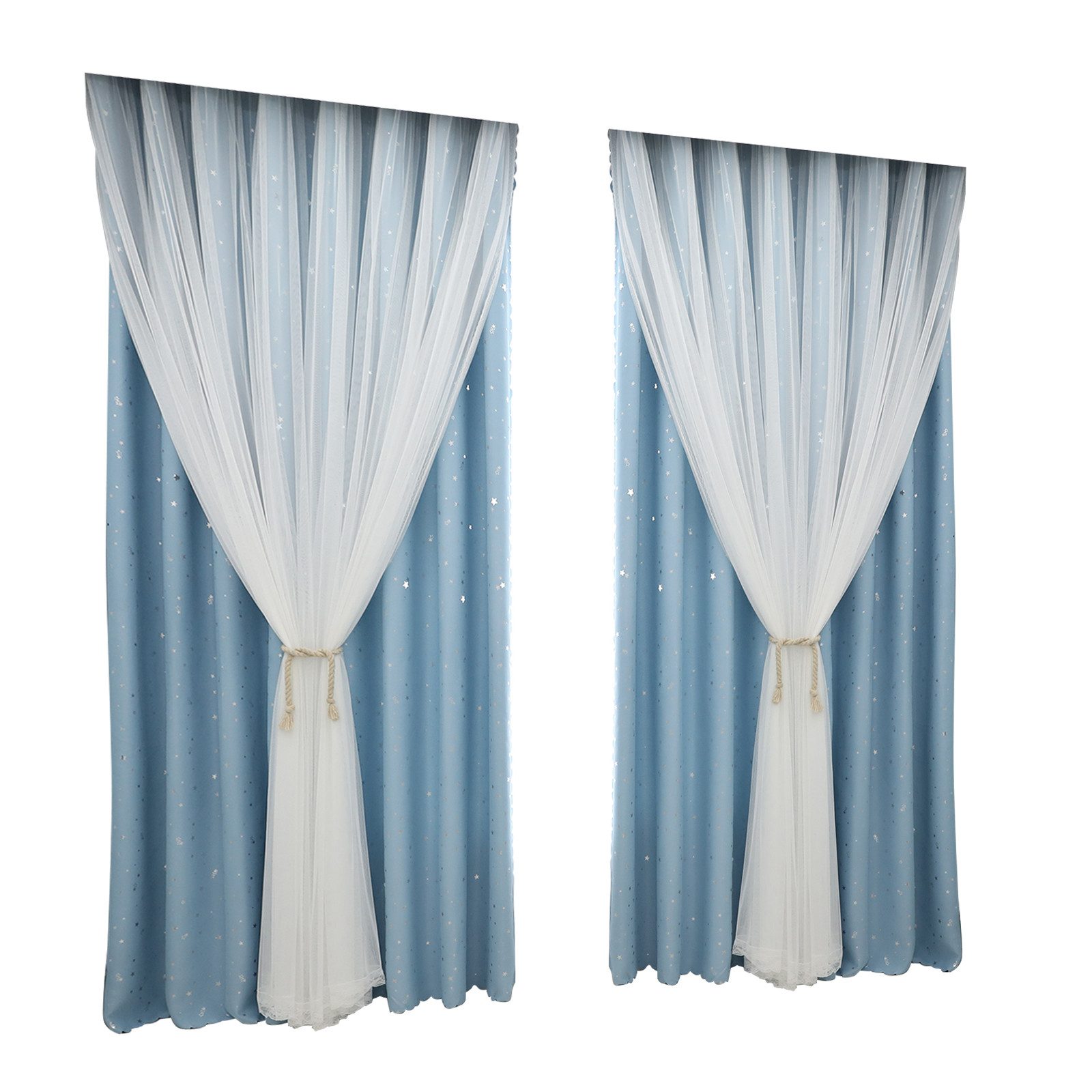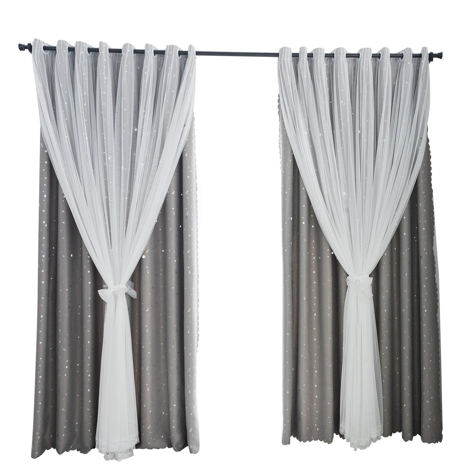 1. Hergestellt aus Double Layer Polyester + Tüll, Hollow-Out & Silber Druck Design machen Ihr Zimmer besonders, 60-80% Licht & Wärme Blocking Material, Spitze Rand.