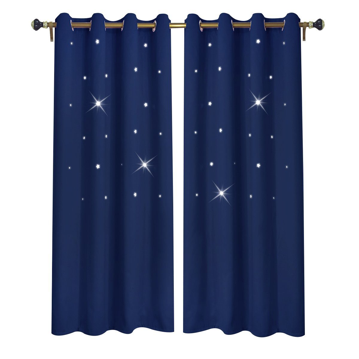 1. Hergestellt aus 100% Polyester, hohe Präzision Schattierung Stoff, keine Verdunkelung Vorhang mehr benötigt, Star Hollow-Out Design machen Ihr Zimmer besonders.