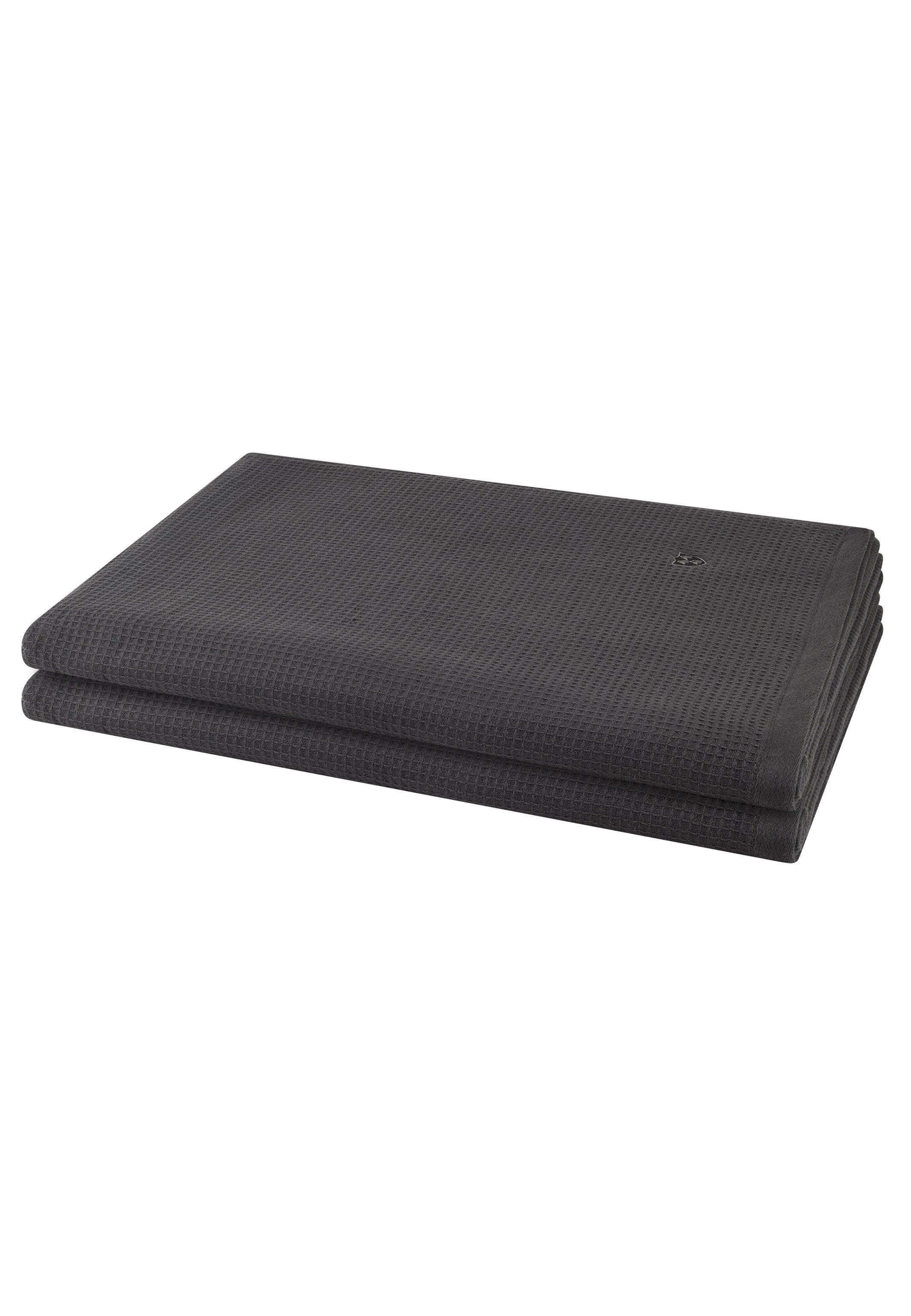 Diese Frottierserie kombiniert stilvolles Waffel-Piqué mit weichem Frottier und bietet reinen Baumwollkomfort. Mit 520 g/m² Flächengewicht überzeugt sie durch hohe Saugkraft und angenehme Haptik. Das edel gestickte Marken-Emblem und die gewebte Bordüre verleihen ein exklusives Design. Pflegeleicht, maschinenwaschbar und trocknergeeignet ist die Serie ideal für eine moderne Bad-Ausstattung. Set besteht aus: 2 X Saunatuch (80 X 200cm)