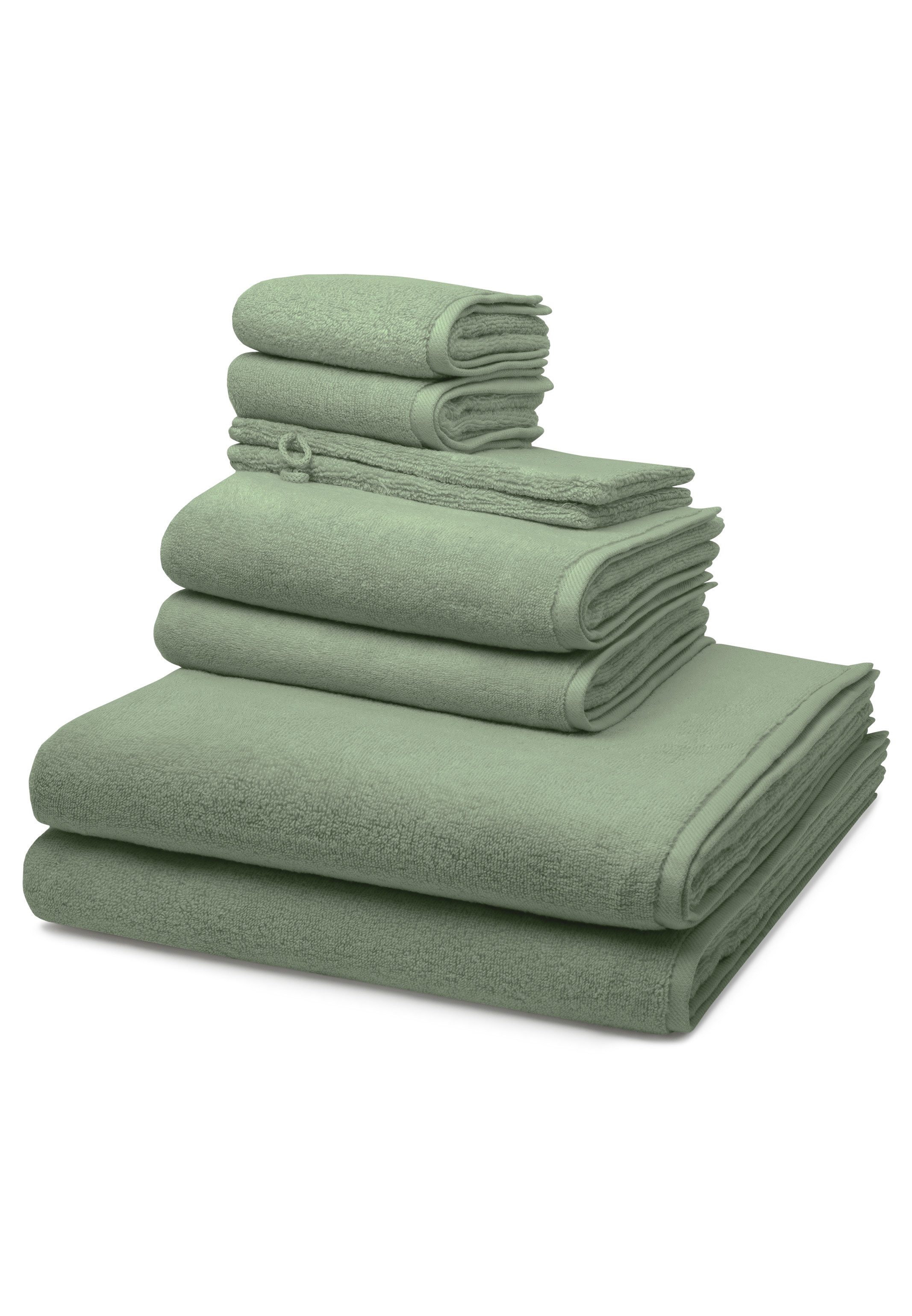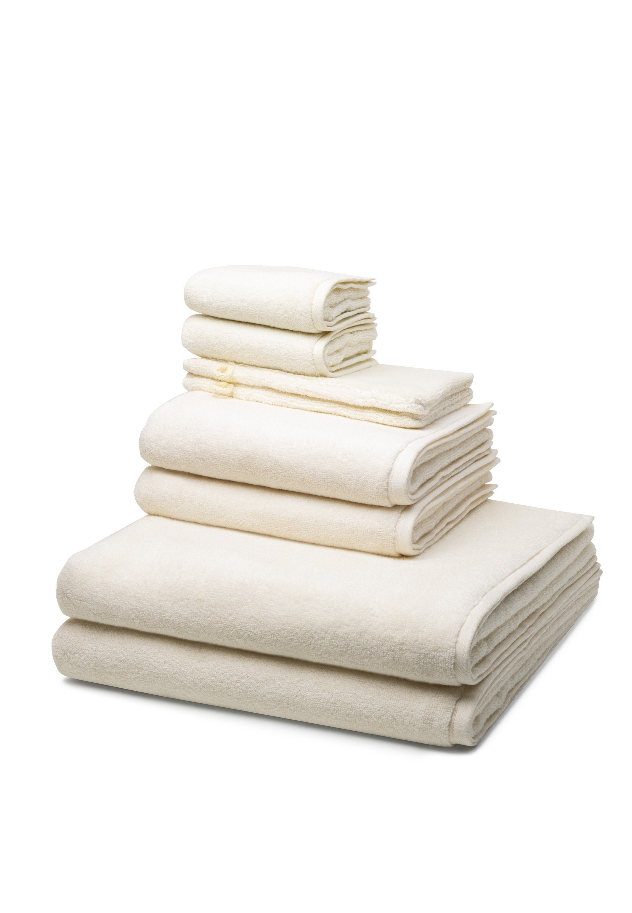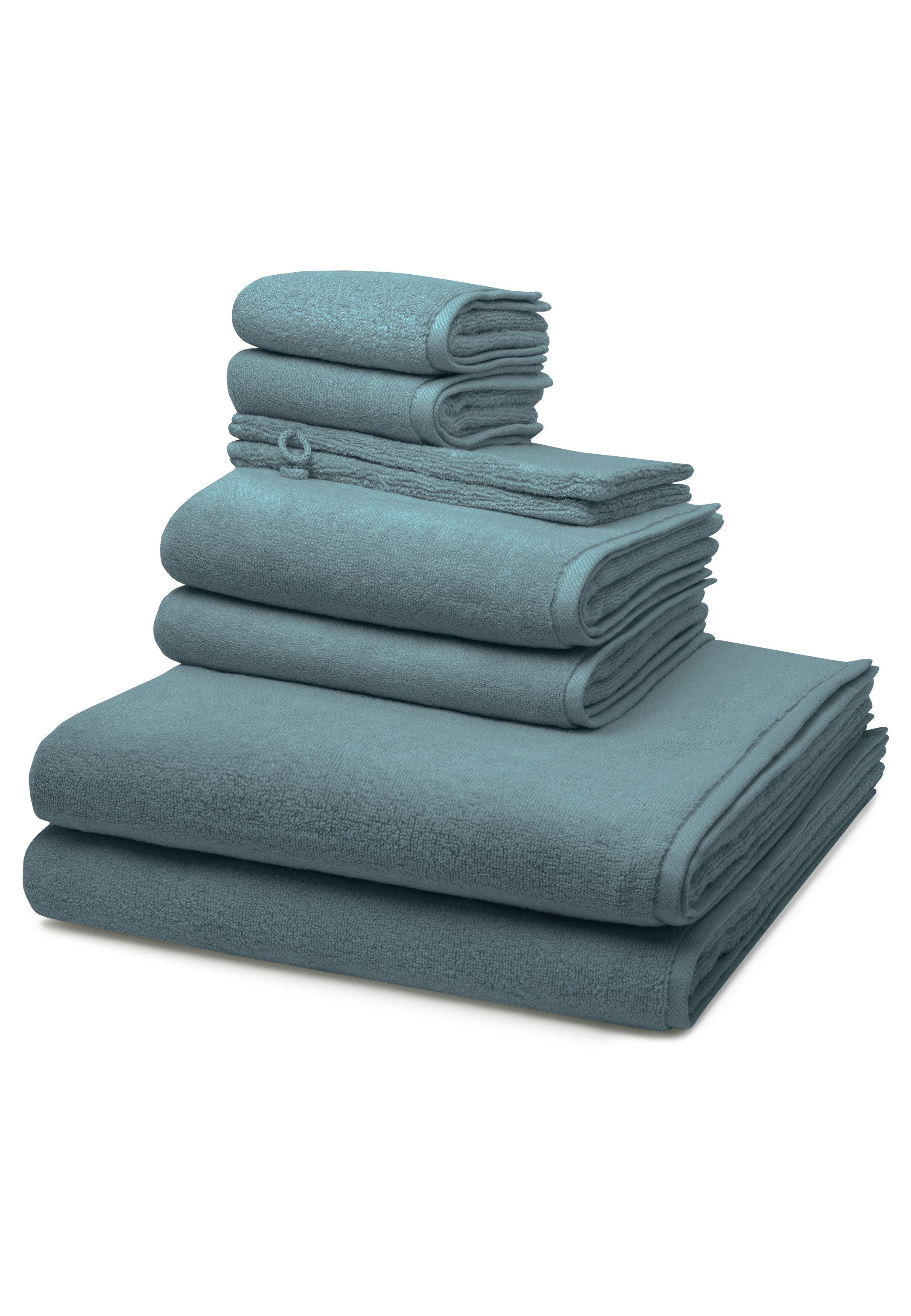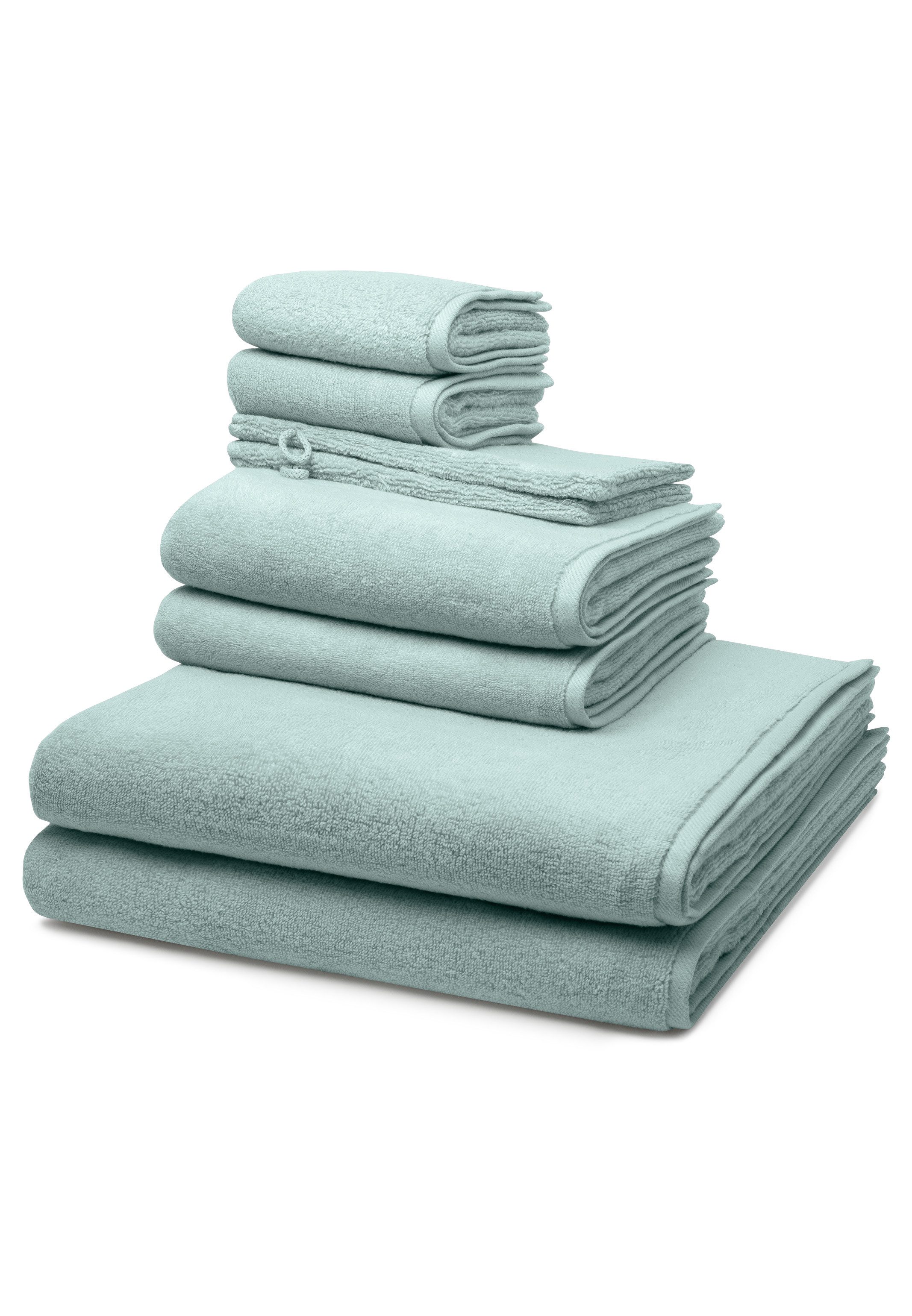 2 X Handtuch (50 X 100cm), 2 X Duschtuch (75 X 140cm), 2 X Gästetuch (30 X 50cm), 2 X Waschhandschuh (16 X 22cm)