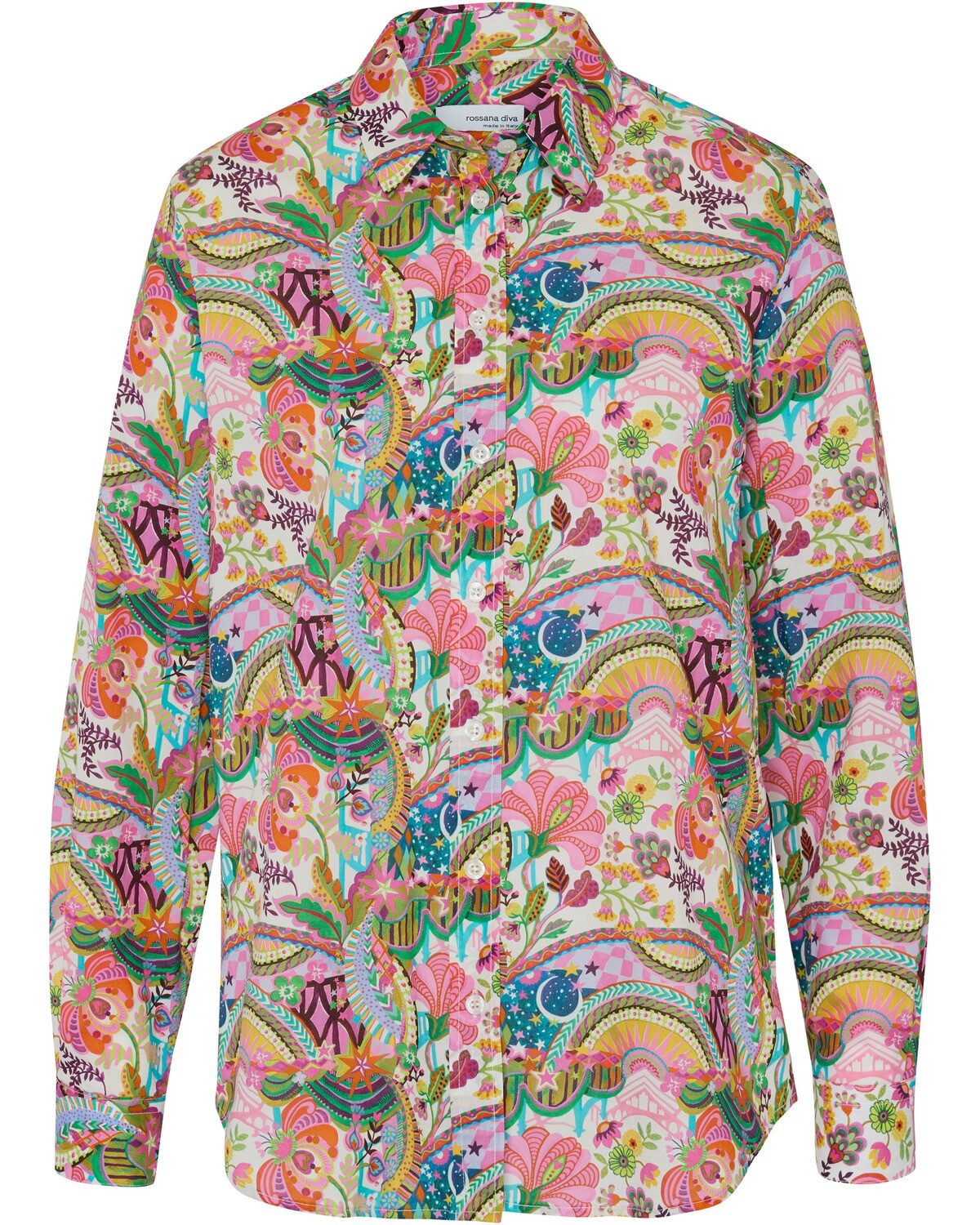 Die Damen Hemdbluse von Rossana Diva vereint stilvolle Eleganz mit einem modernen Design. Der leicht taillierte Schnitt sorgt für eine schmeichelhafte Silhouette, während der florale Allover-Print lebendige Akzente setzt und Frische in jede Garderobe bringt. Die Kombination aus klassischem Hemdkragen und durchgehender Knopfleiste verleiht der Bluse einen zeitlosen Charme, der sowohl im Büro als auch in der Freizeit überzeugt. Ein besonderes Highlight der Bluse ist die Rückenfalte, die nicht nur für zusätzlichen Komfort sorgt, sondern auch für eine ansprechende Passform. Der leicht gerundete Saum rundet das Gesamtbild harmonisch ab und ermöglicht vielseitige Kombinationsmöglichkeiten mit verschiedenen Unterteilen. Ob zu einer schicken Hose oder einem lässigen Rock – diese Hemdbluse ist ein wahres Multitalent. Hergestellt aus reiner Baumwolle bietet die Bluse ein angenehmes Tragegefühl. Die Pflegeleichtigkeit des Stoffes macht sie zum idealen Begleiter für den Alltag. Mit der Damen Hemdbluse von Rossana Diva wird jeder Look mühelos aufgewertet und strahlt feminine Raffinesse aus. Oberstoff: 100% Baumwolle