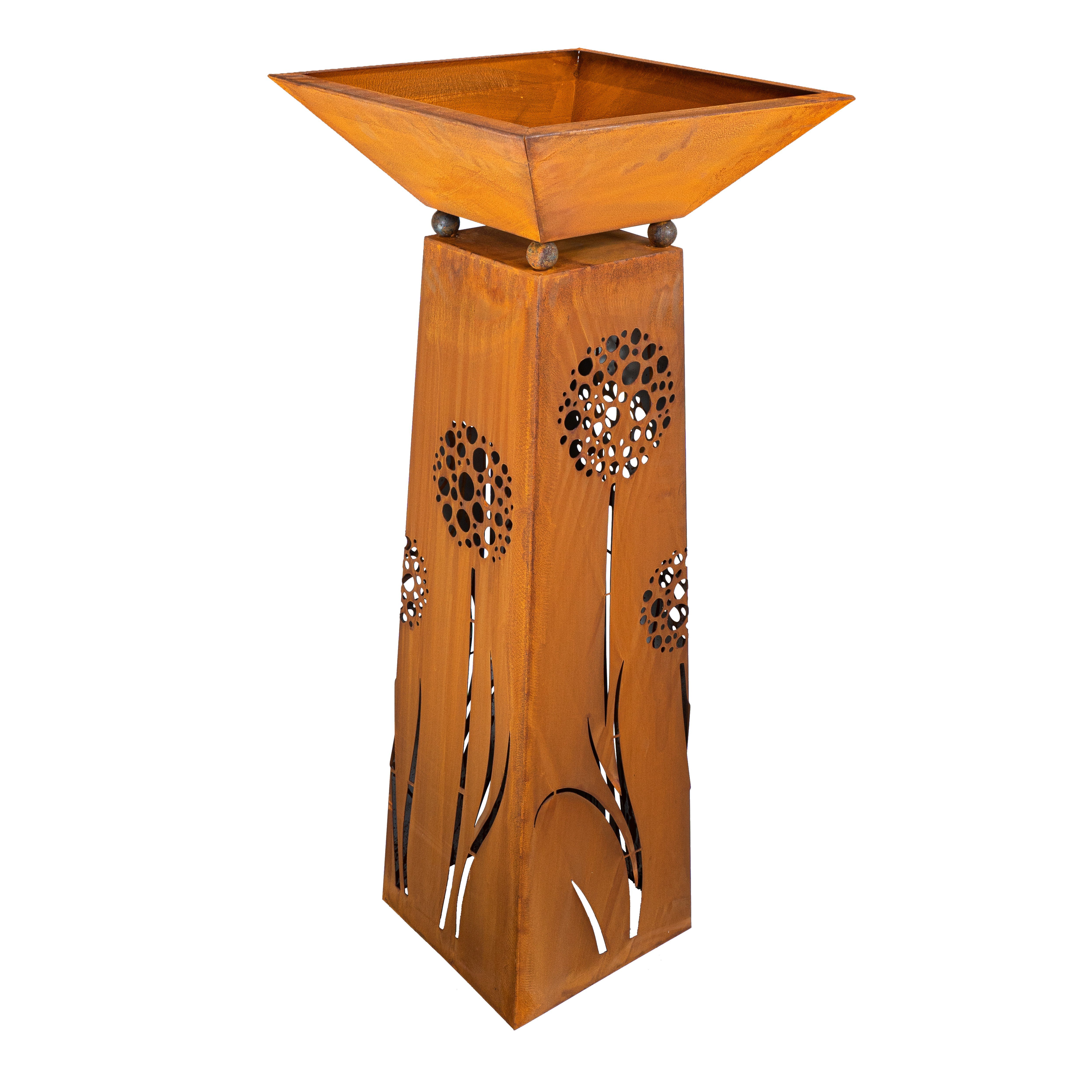 Die konische Pflanzsäule mit Pusteblumen-Motiv bringt sofort Höhe, Struktur und warmen Edelrost-Charme in Eingangsbereiche, auf Terrasse, Balkon oder ins Blumenbeet. Die Silhouette ist von allen Seiten sichtbar; die runde Bodenöffnung erlaubt – je nach Standort – sogar eine dezente Beleuchtung von innen.