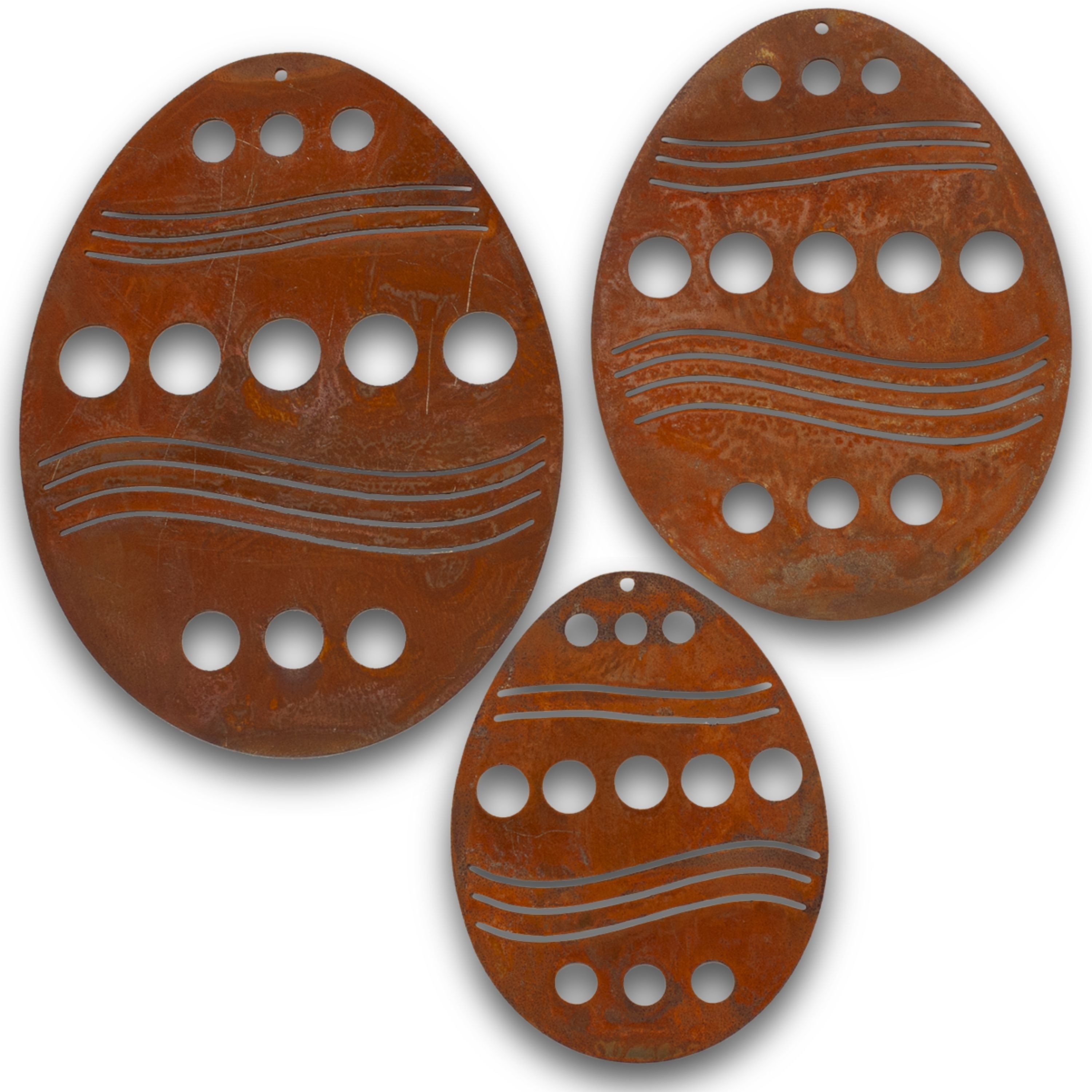 ► Geschenk Idee: Legen Sie die Vintage Deko Ostereier mit ins Osternest oder überreichen Sie das 3er Set Rost Deko als Hängedeko an einem hübschen Blumenstauß.