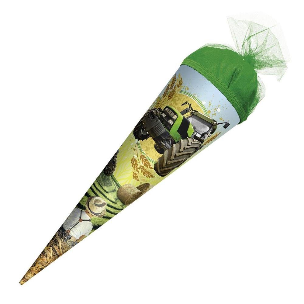 Roth Schultüte 22cm rund Traktor kleine Zuckertüte Tüll-Verschluss Einschulung