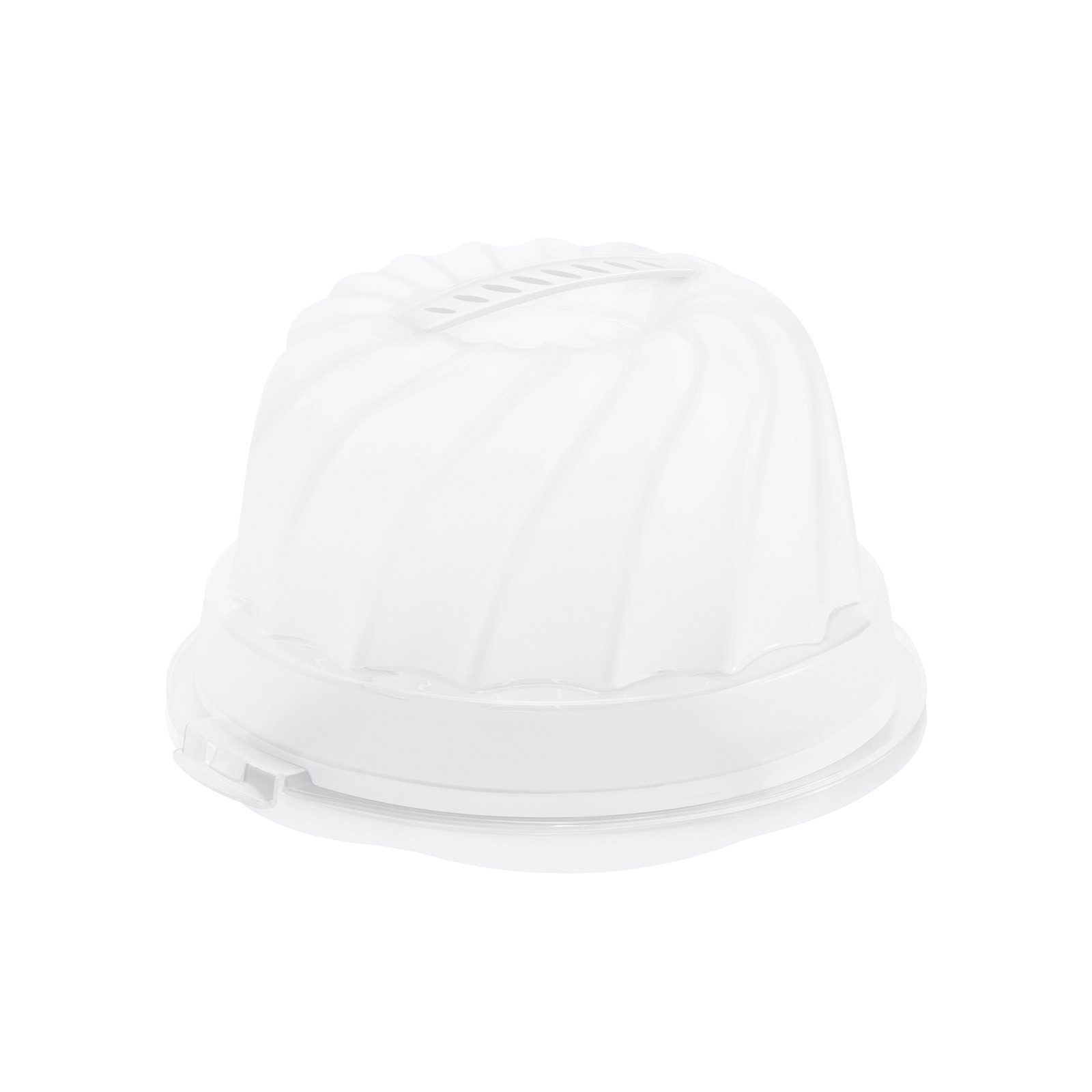 Der Gugelhupf-Kuchen-Behälter der Qualitätsmarke Rotho eignet sich aufgrund seiner charakteristischen Form zur bequemen Aufbewahrung und dem stressfreien Transport Ihres Gugelhupfs. Er ist aus transparentem Kunststoff gefertigt und besteht aus einer stabilen Kuchenplatte sowie der dazugehörigen Abdeckhaube. Beide Produktteile lassen sich dank einrastender Klickverschlüsse sicher miteinander verbinden. Ein an der Kuchenglocke befestigter, stabiler Tragegriff garantiert Ihrem Kuchen einen angenehmen Transport. Der Kuchen-Behälter der Linie FRESH ist langlebig, robust und äusserst pflegeleicht. So kann dar Transportbehälter problemlos in der Spülmaschine oder von Hand gereinigt werden. Mit einem Gewicht von 326 g erweist sich der Gugelhupf-Kuchenbehälter von Rotho als leichter und dennoch stabiler Behälter zur Aufbewahrung dieser besonderen Kuchenspezialität. Die Marke Rotho setzt zudem sowohl hinsichtlich der Verarbeitung sowie Qualität der transportablen Kuchenglocke hohe Massstäbe.