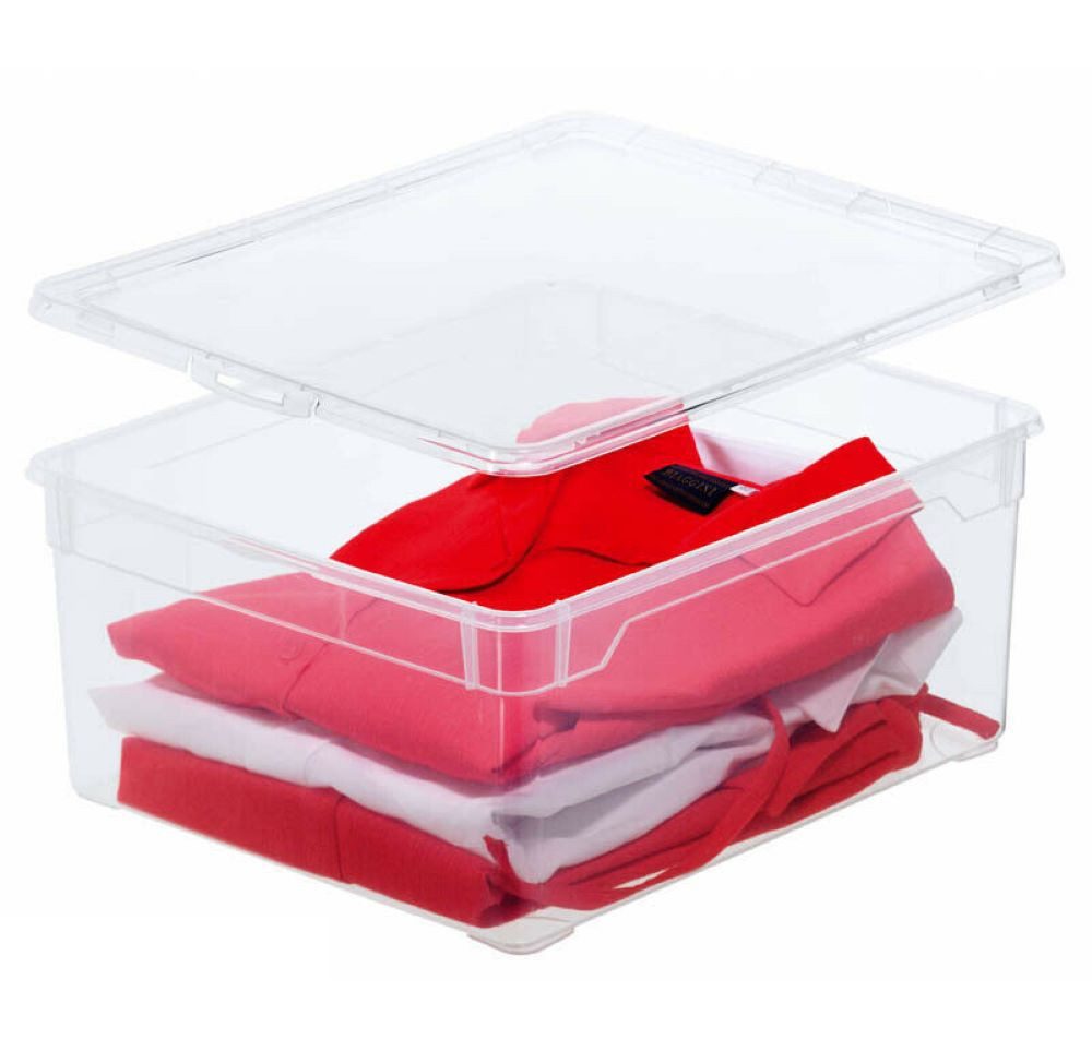 Die Rotho Clearbox Sweater ist eine transparente Aufbewahrungsbox mit einem Volumen von 18 Litern. Sie dient der ordentlichen und übersichtlichen Lagerung von Kleidung und anderen Gegenständen. Durch das klare Material sind die Inhalte jederzeit sichtbar, was Suchaktionen überflüssig macht.